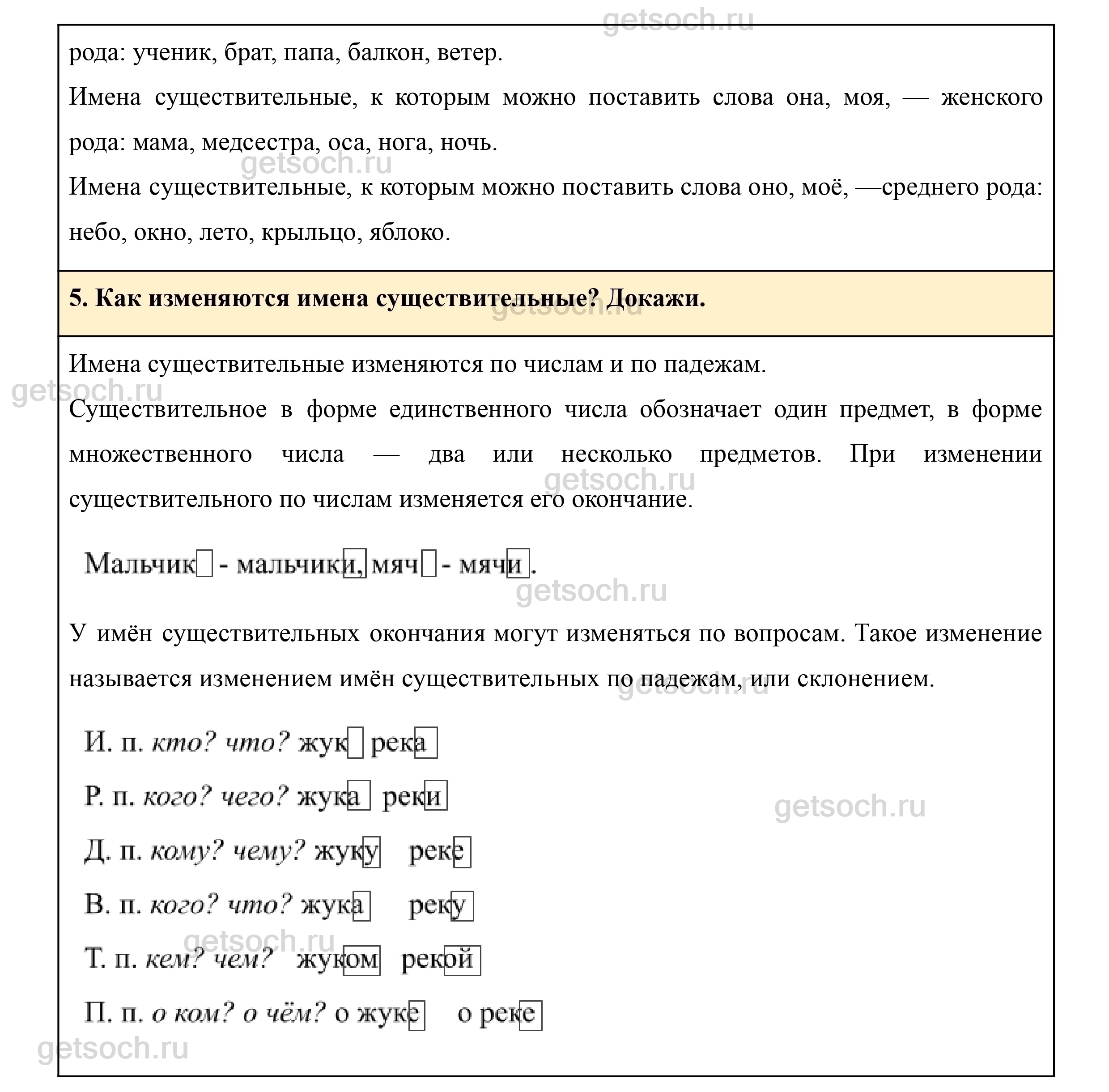 5. Как изменяются имена существительные? Докажи.