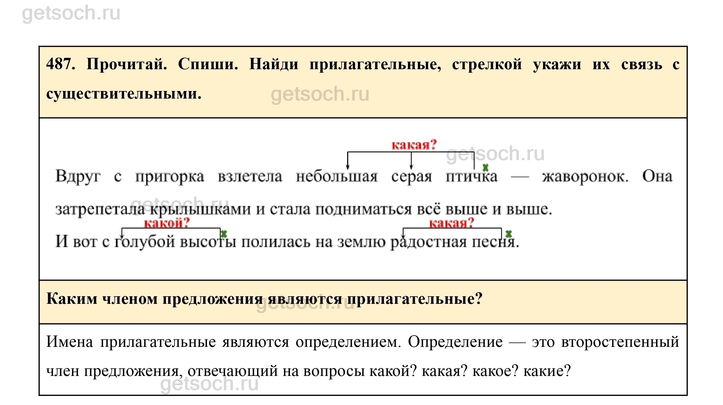 487. Прочитай. Спиши. Найди прилагательные, стрелкой укажи их связь с существительными.