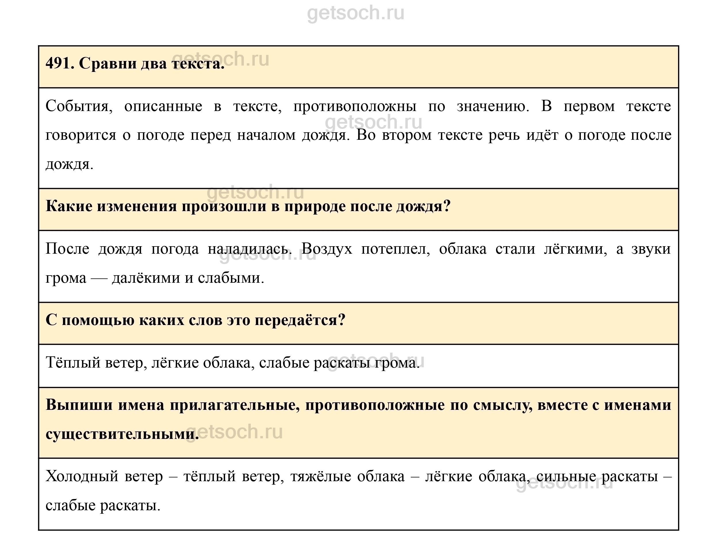 Рассмотрим ответы на Упражнение 491 из учебника по русскому языку для 3 класса Рамзаевой