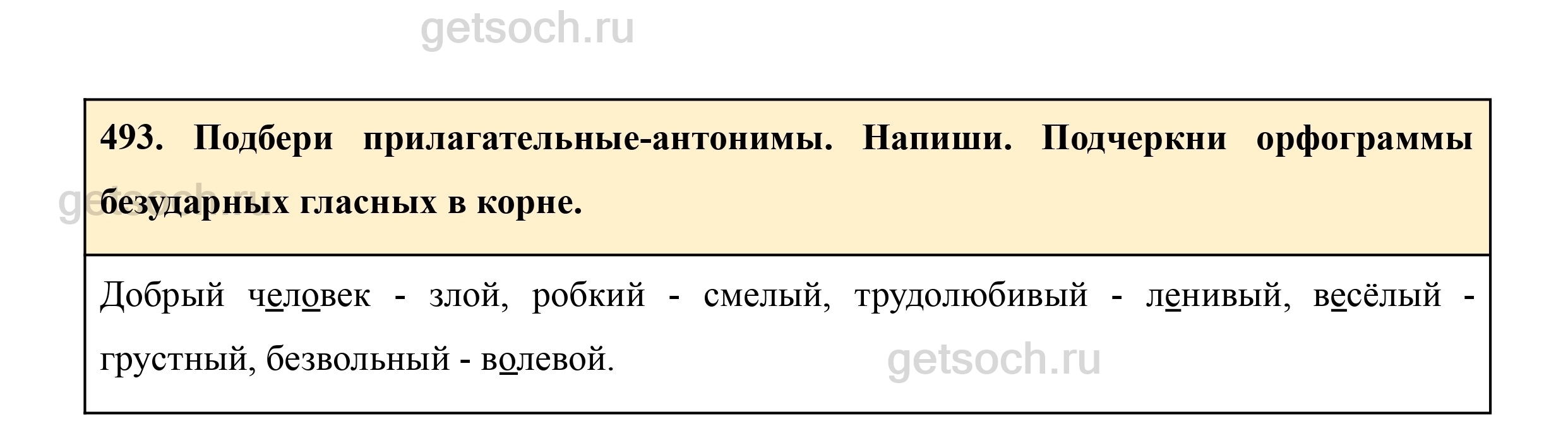 493. Подбери прилагательные-антонимы. Напиши. Подчеркни орфограммы безударных гласных в корне.