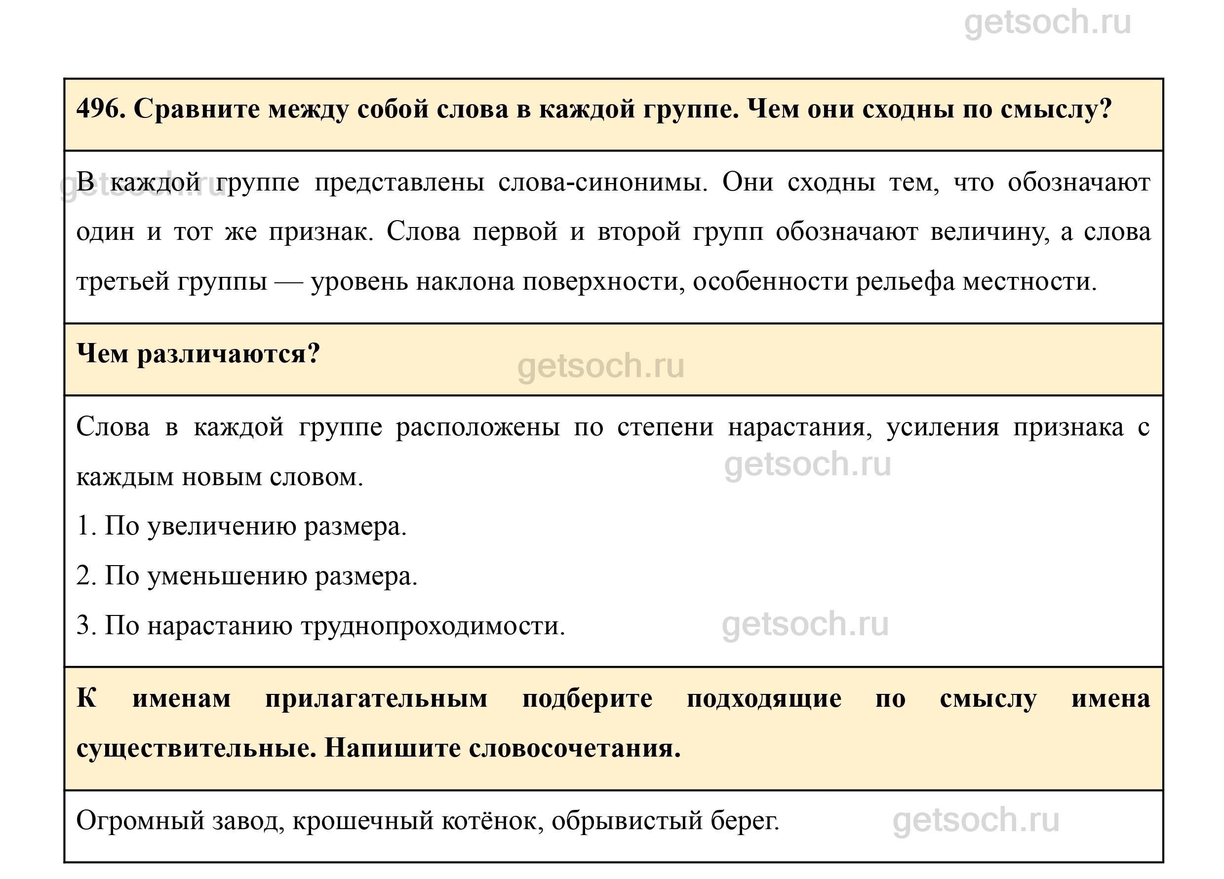496. Сравните между собой слова в каждой группе. Чем они сходны по смыслу?