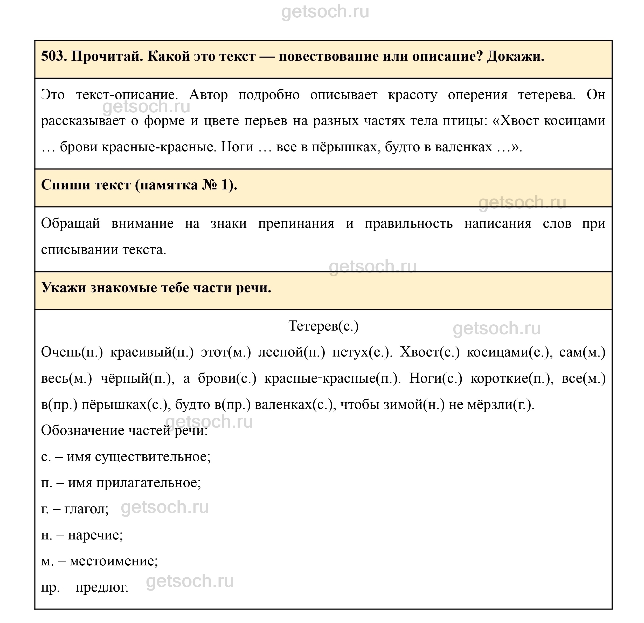 Рассмотрим ответы на Упражнение 503 из учебника по русскому языку для 3 класса Рамзаевой