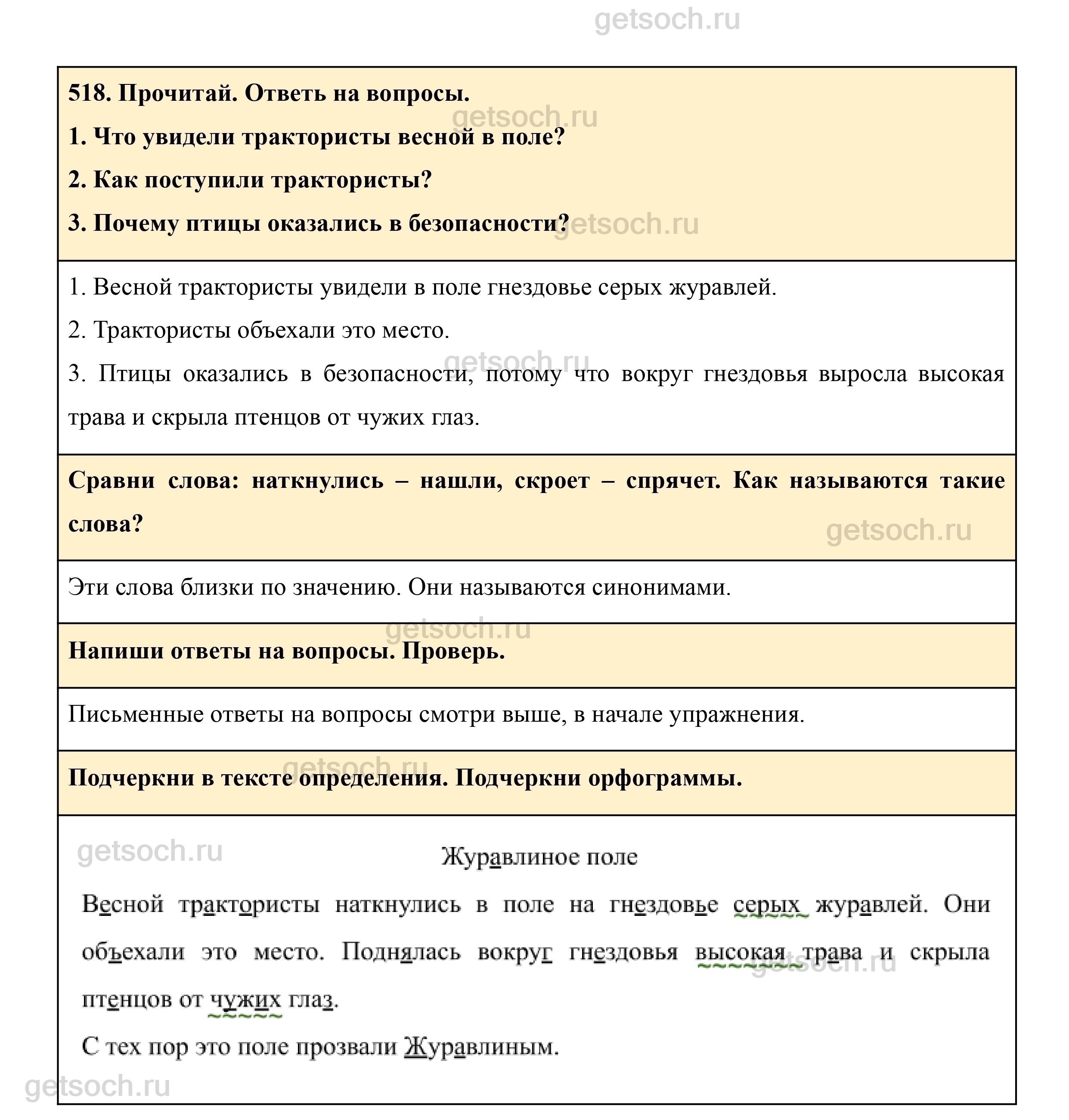 Рассмотрим ответы на Упражнение 518 из учебника по русскому языку для 3 класса Рамзаевой