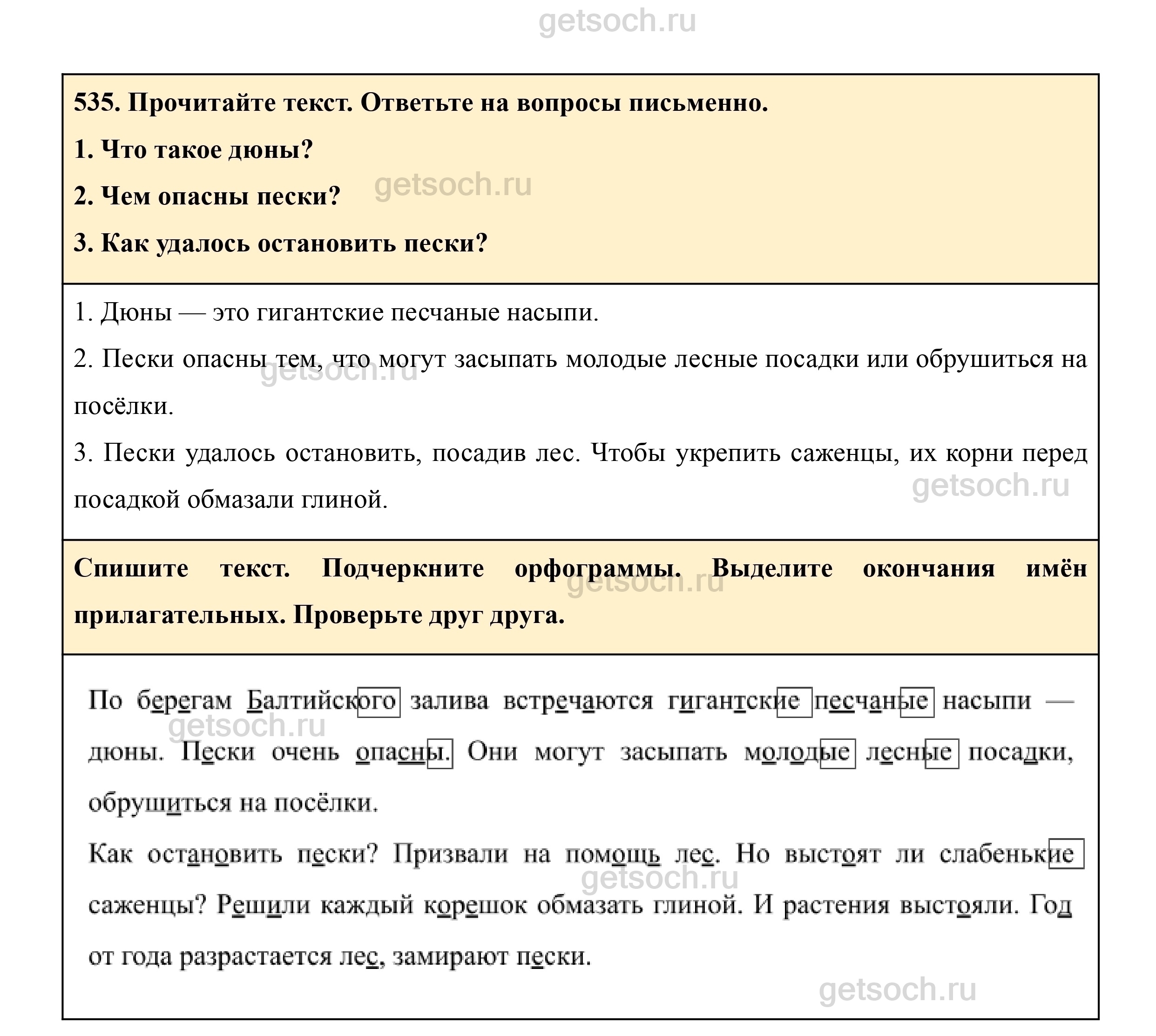 Рассмотрим ответы на Упражнение 535 из учебника по русскому языку для 3 класса Рамзаевой