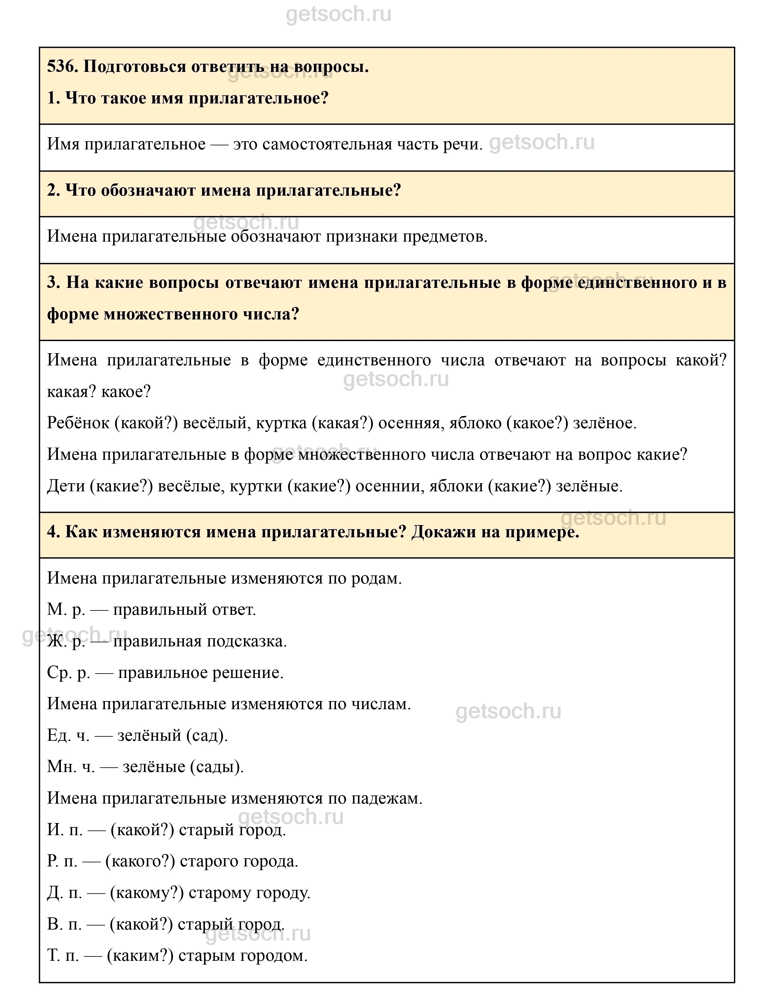 Рассмотрим ответы на Упражнение 536 из учебника по русскому языку для 3 класса Рамзаевой