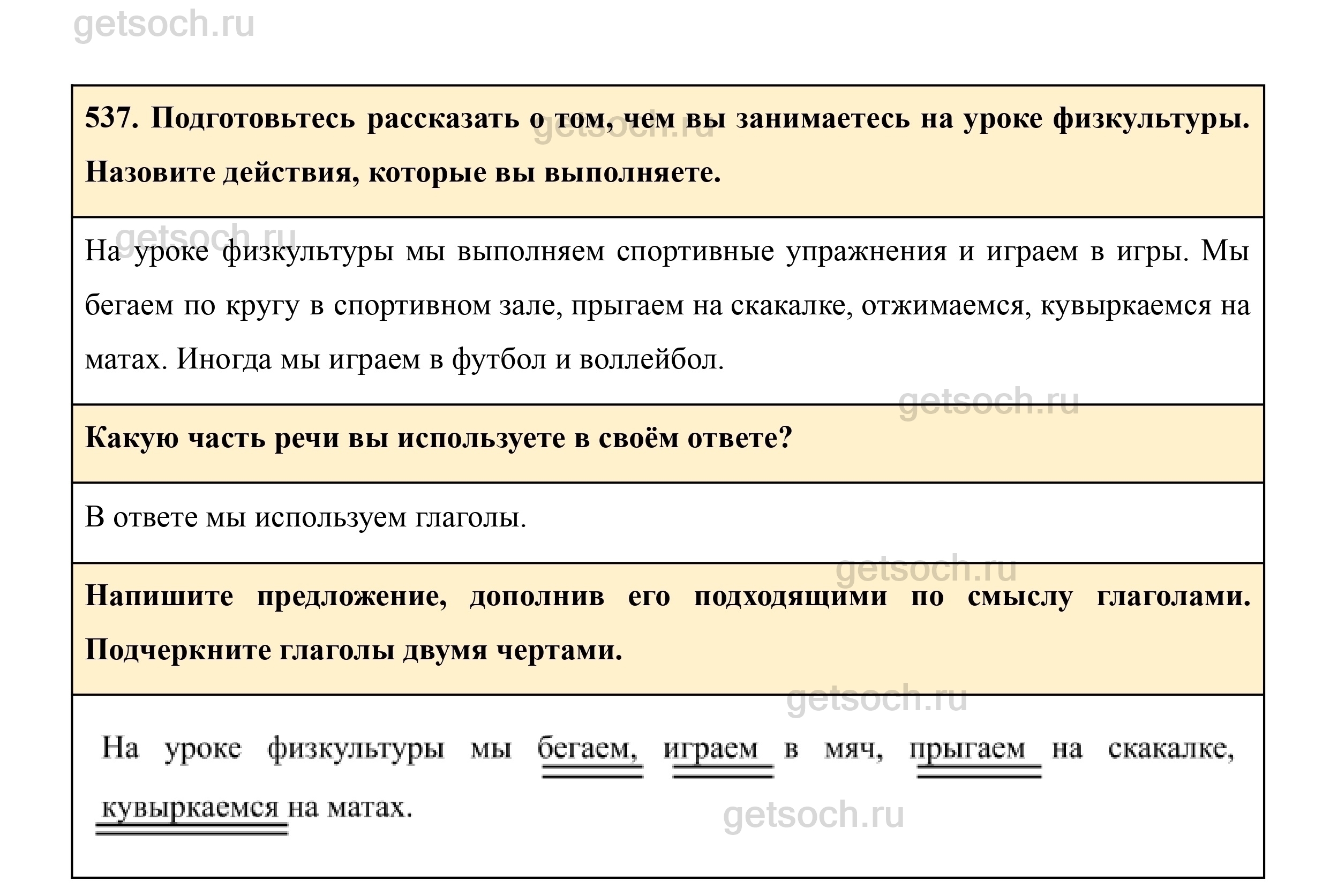 537. Подготовьтесь рассказать о том, чем вы занимаетесь на уроке физкультуры. Назовите действия, которые вы выполняете.