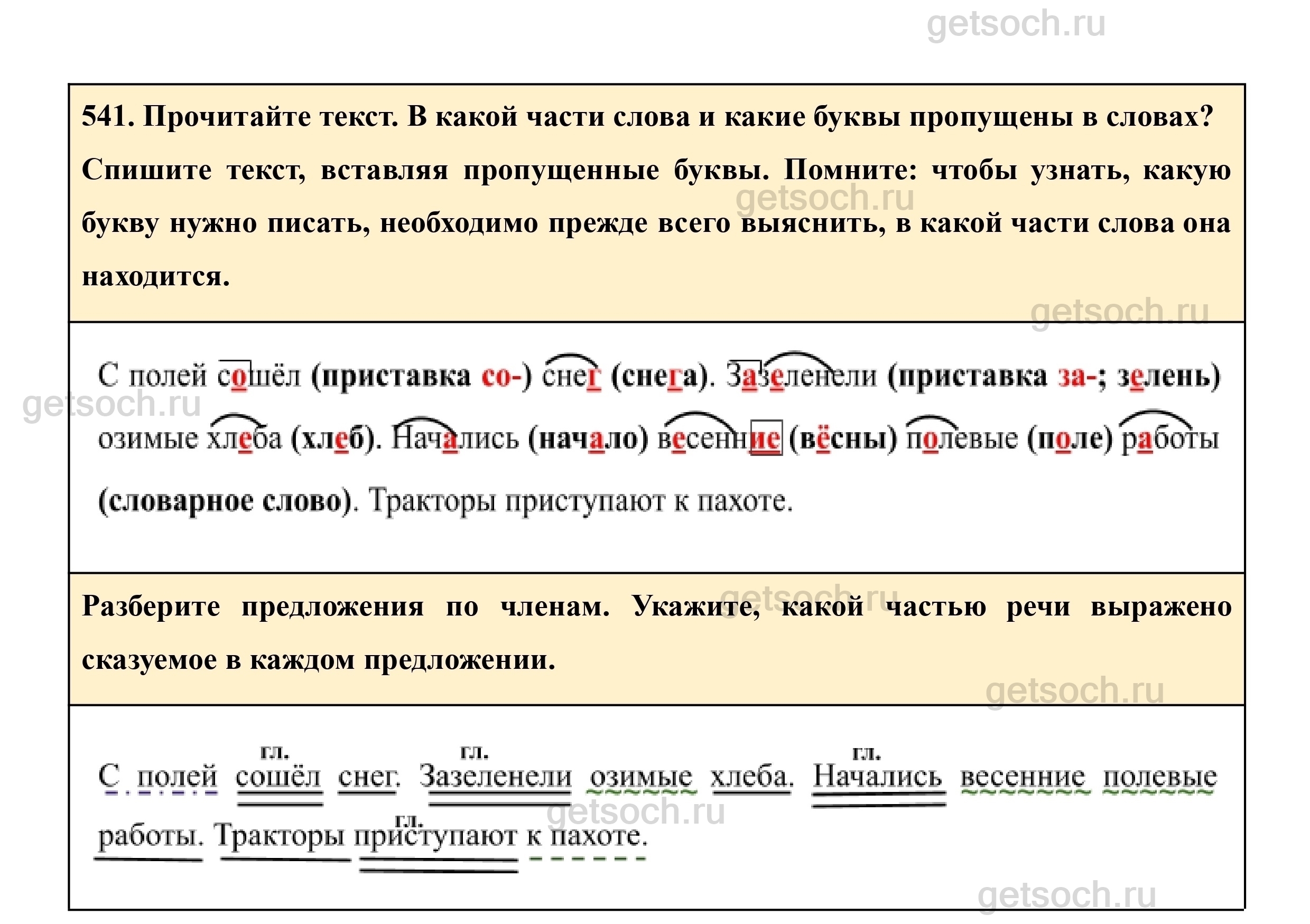 541. Прочитайте текст. В какой части слова и какие буквы пропущены в словах?