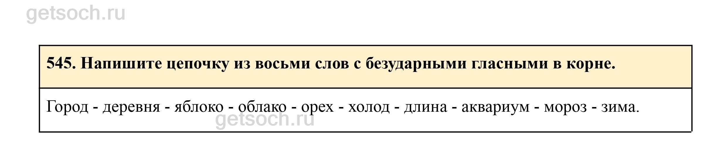 545. Напишите цепочку из восьми слов с безударными гласными в корне.