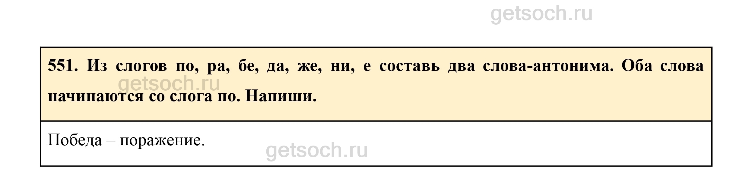 551. Из слогов по, ра, бе, да, же, ни, е составь два слова-антонима. Оба слова начинаются со слога по. Напиши.