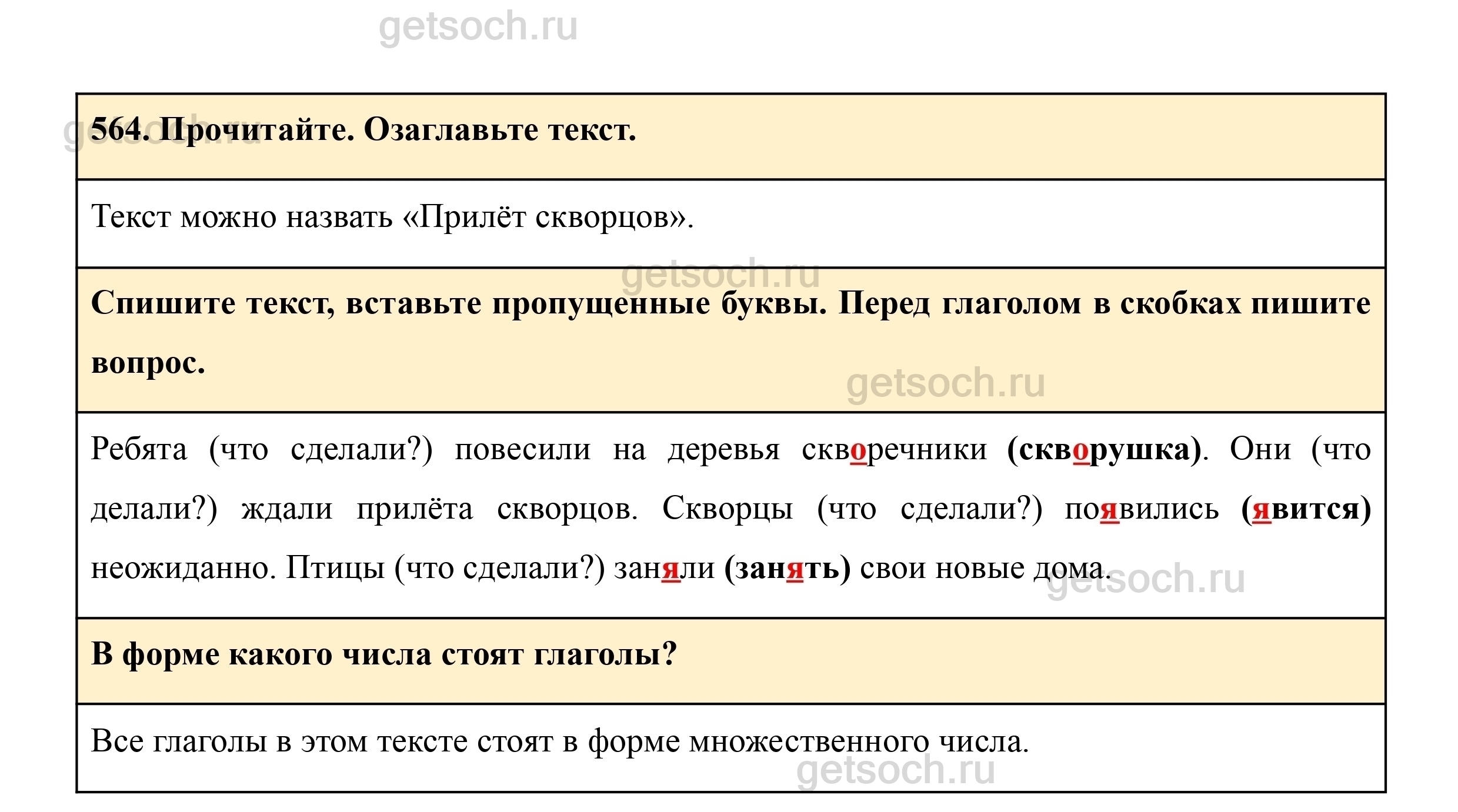 Рассмотрим ответы на Упражнение 564 из учебника по русскому языку для 3 класса Рамзаевой