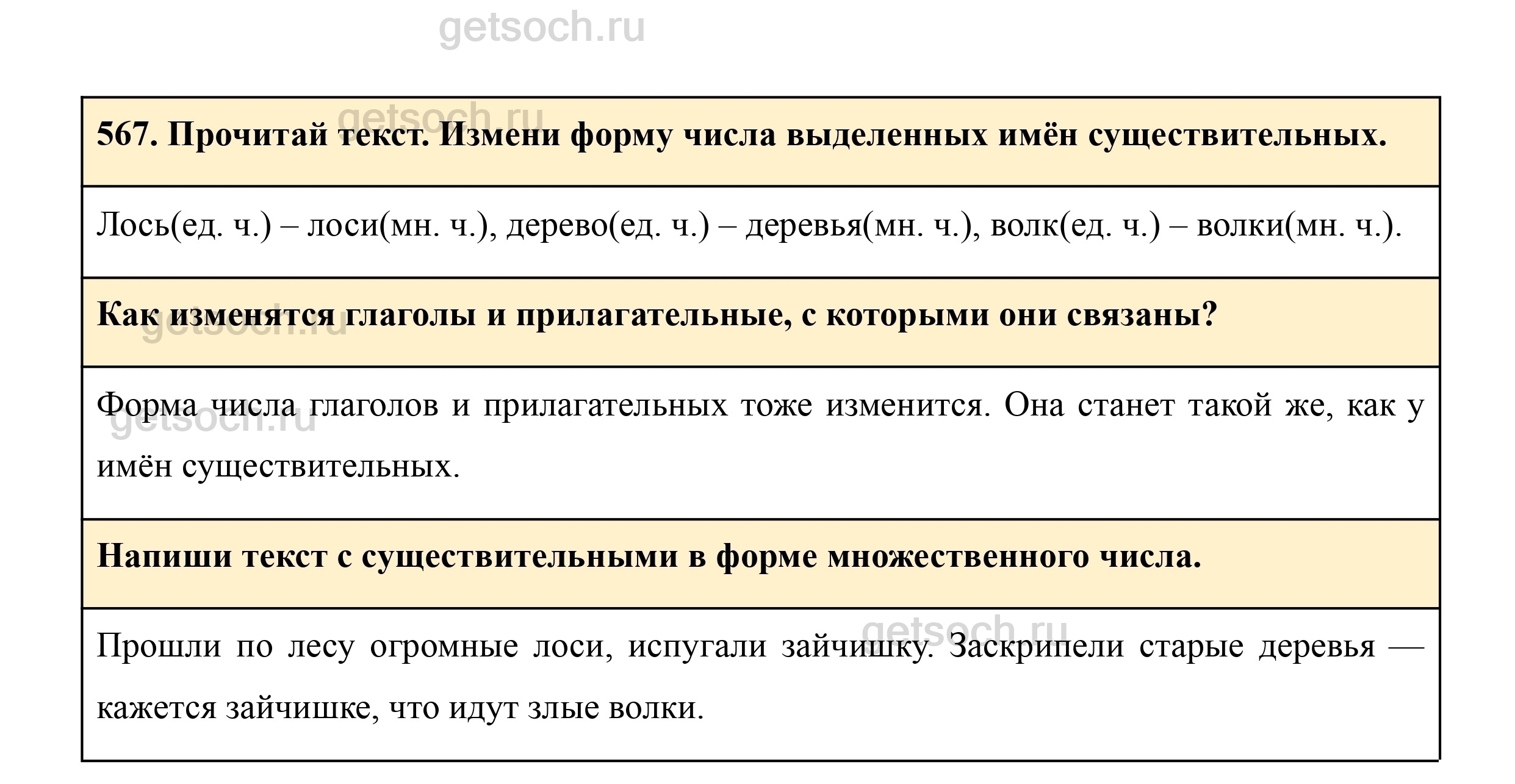 567. Прочитай текст. Измени форму числа выделенных имён существительных.