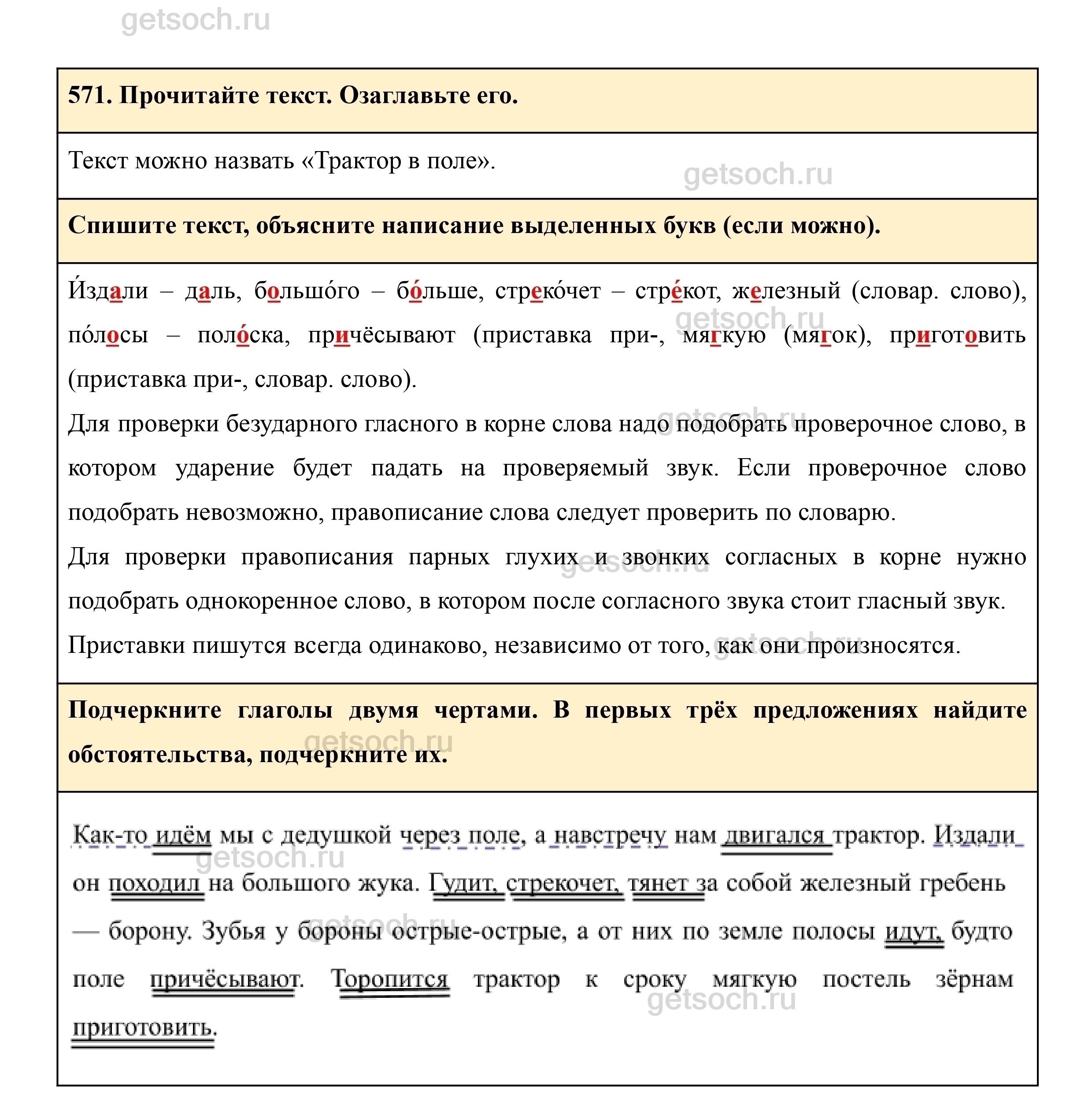 Рассмотрим ответы на Упражнение 571 из учебника по русскому языку для 3 класса Рамзаевой