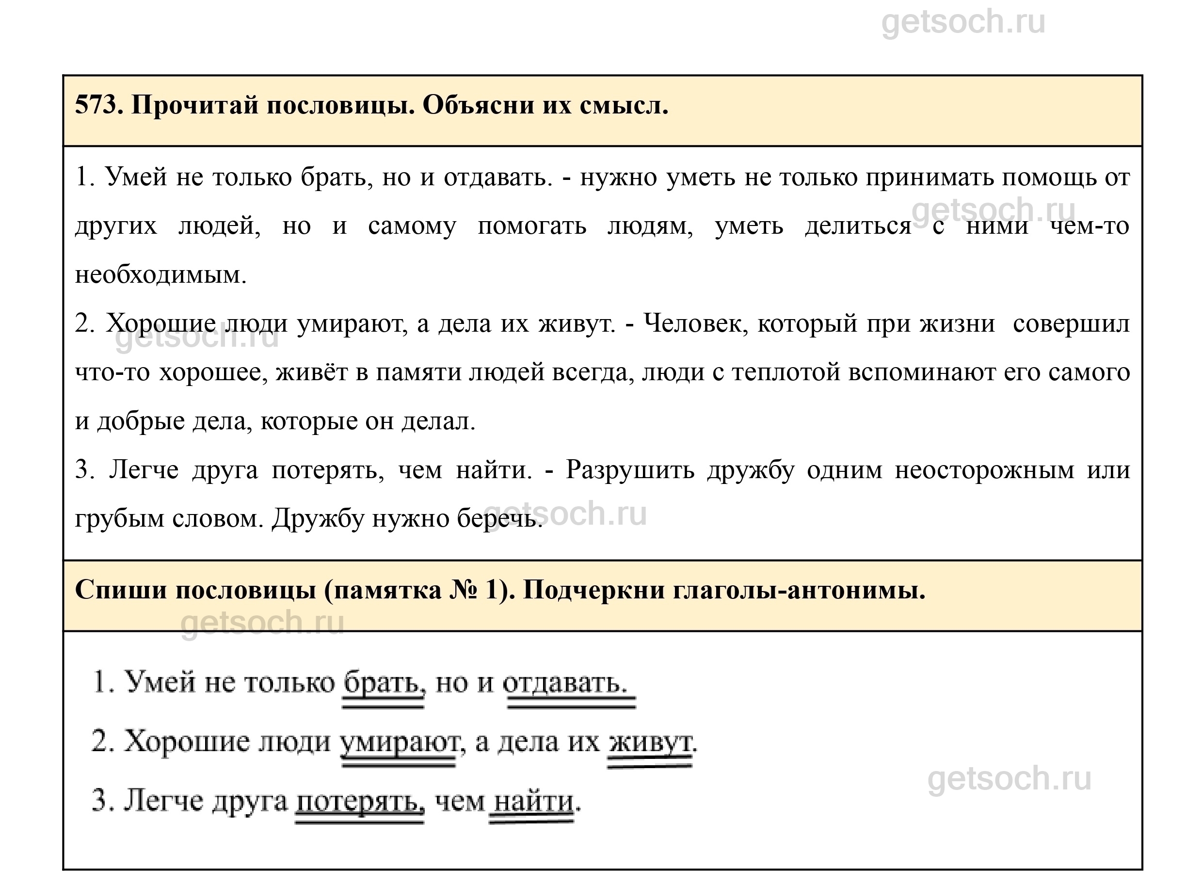573. Прочитай пословицы. Объясни их смысл.