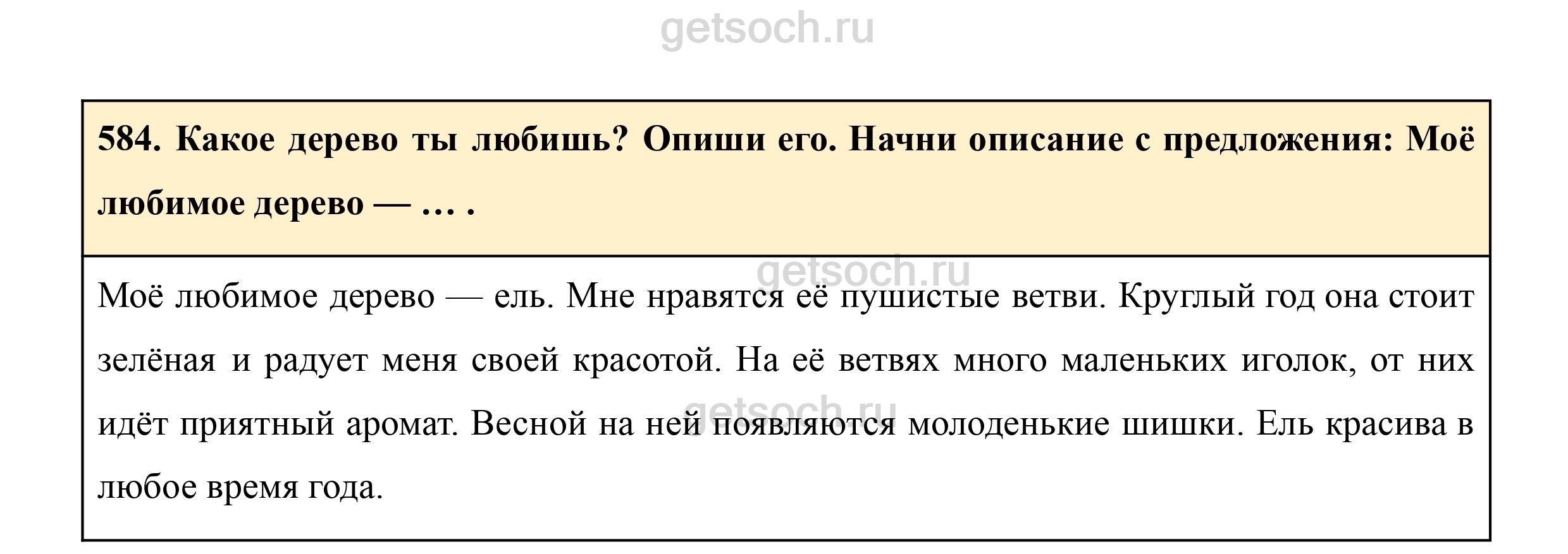 584. Какое дерево ты любишь? Опиши его. Начни описание с предложения: Моё любимое дерево — … .