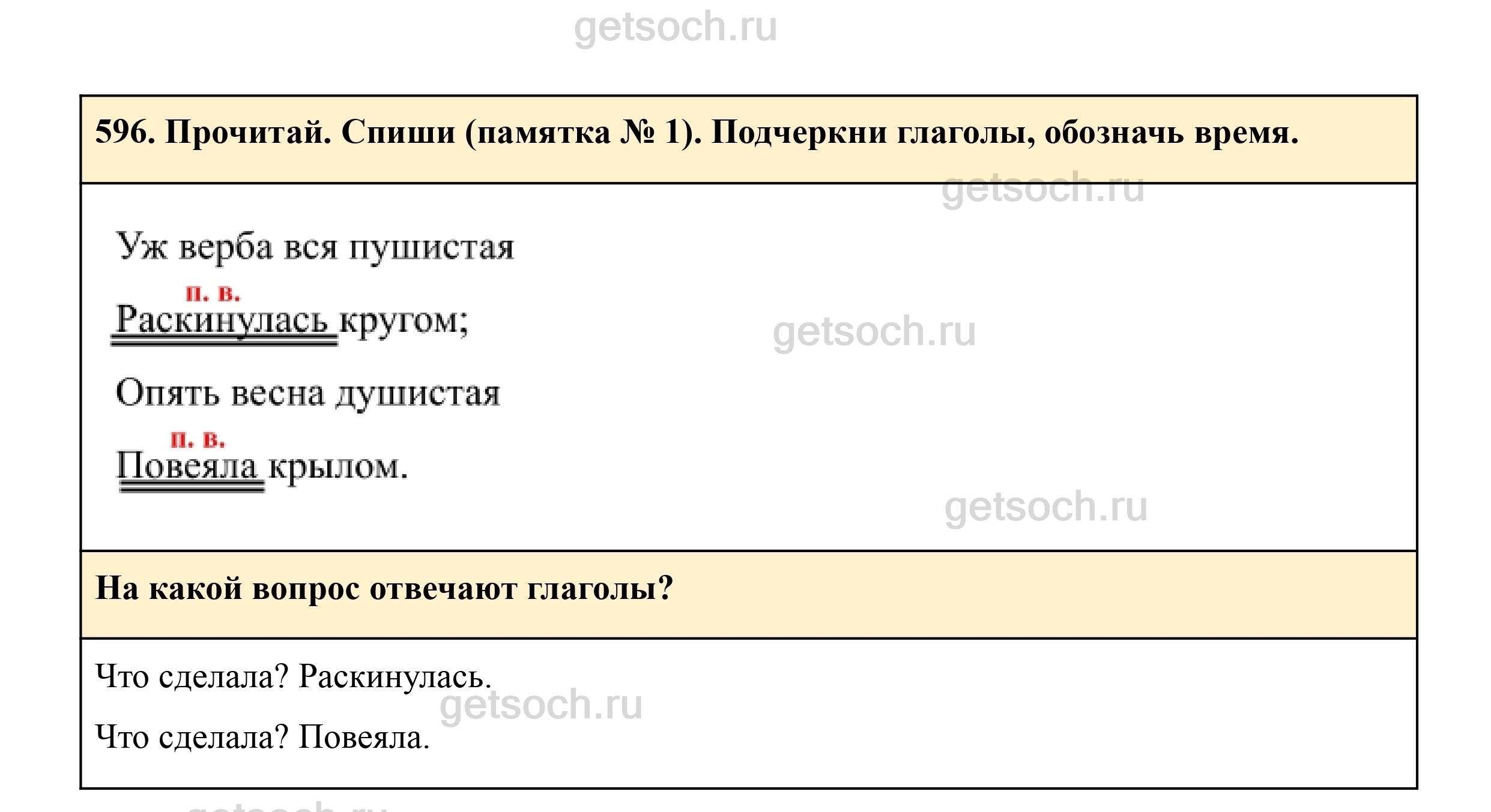 596. Прочитай. Спиши (памятка № 1). Подчеркни глаголы, обозначь время.