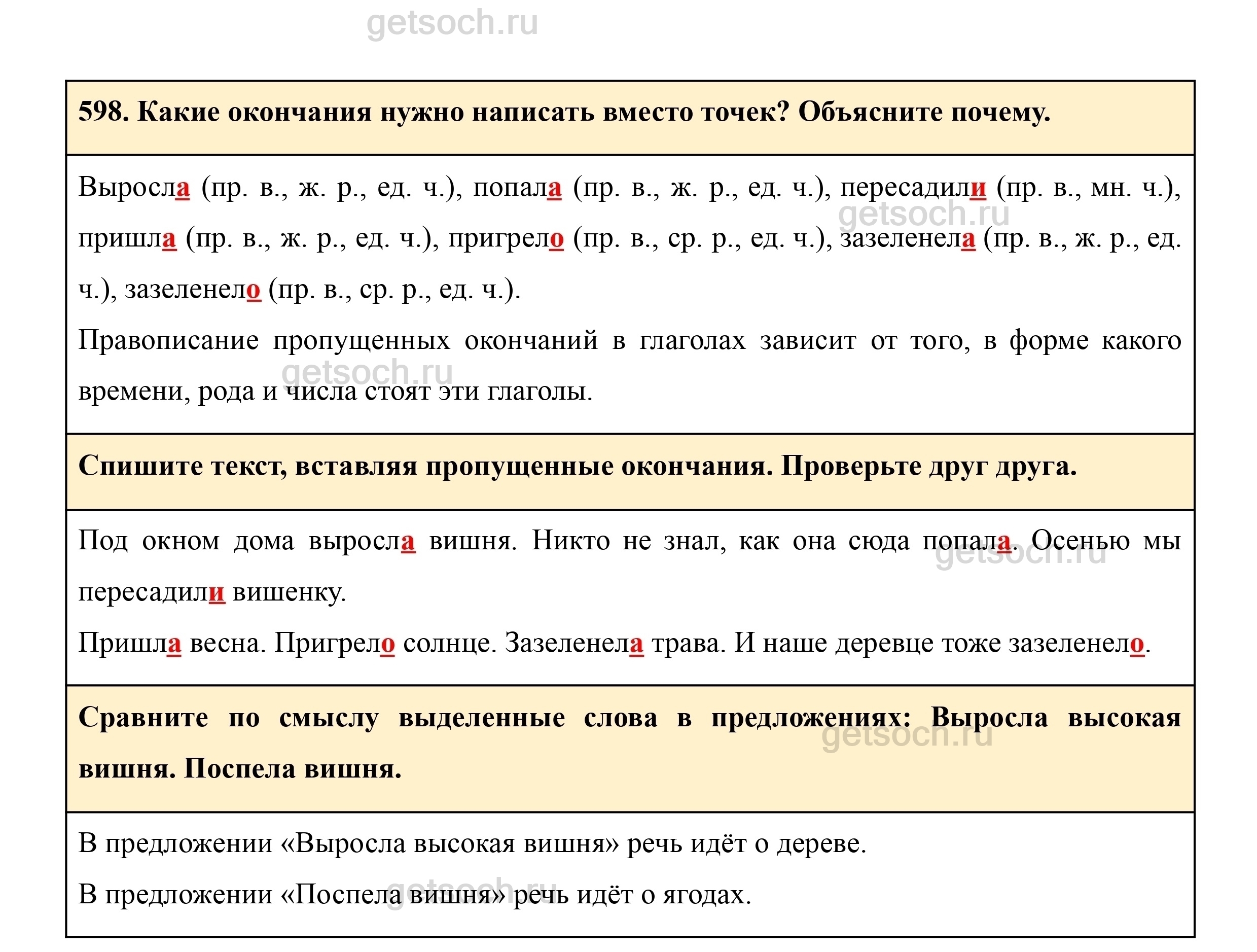 Рассмотрим ответы на Упражнение 598 из учебника по русскому языку для 3 класса Рамзаевой