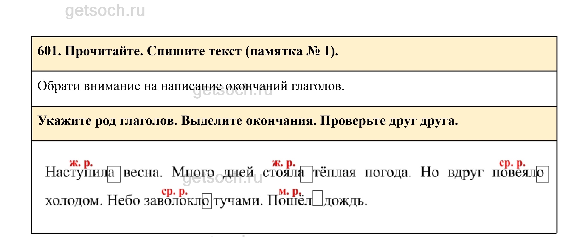 Рассмотрим ответы на Упражнение 601 из учебника по русскому языку для 3 класса Рамзаевой