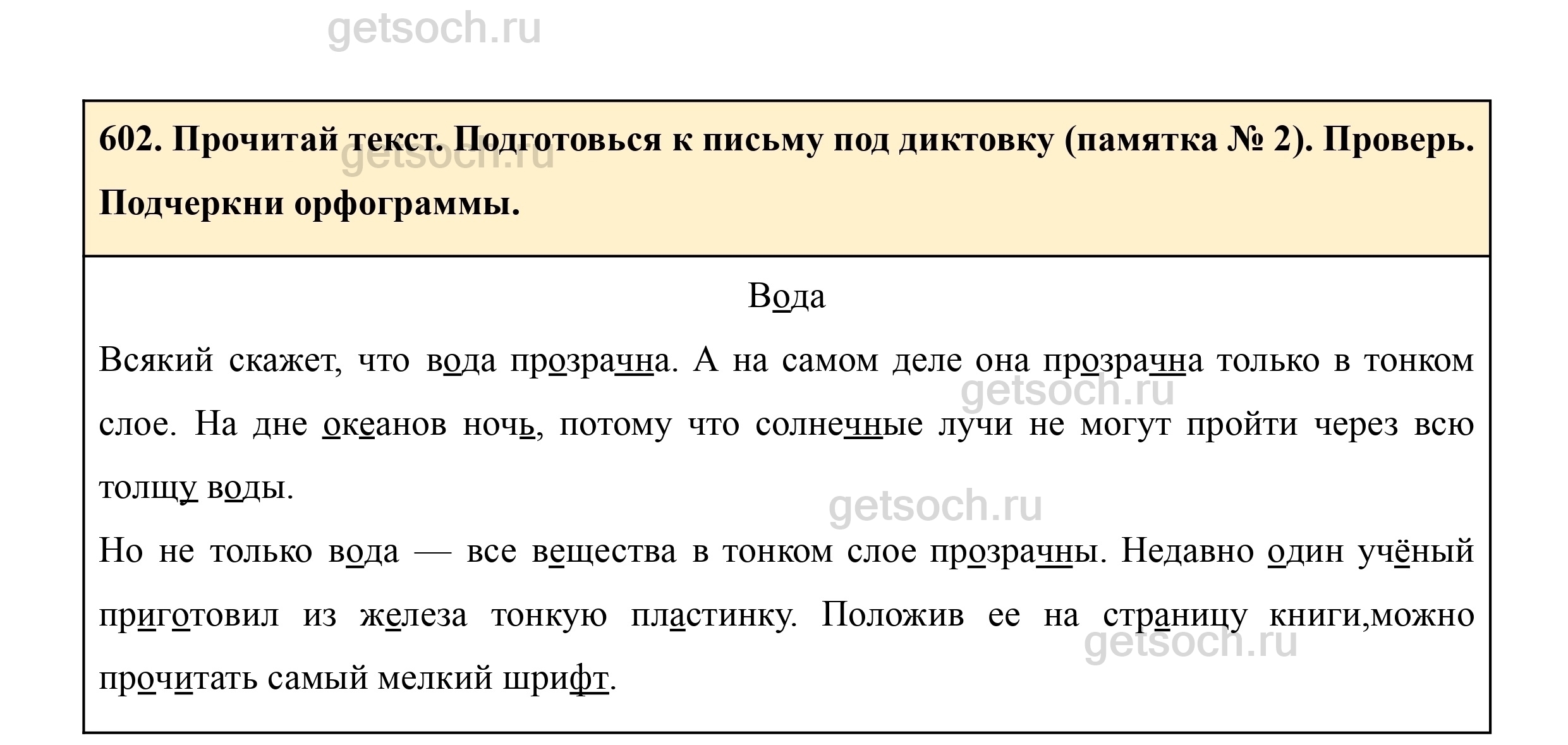 602. Прочитай текст. Подготовься к письму под диктовку (памятка № 2). Проверь. Подчеркни орфограммы.