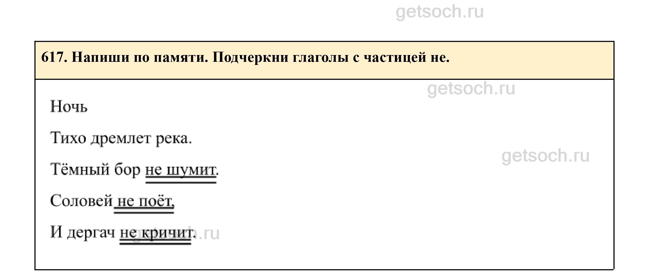 617. Напиши по памяти. Подчеркни глаголы с частицей не.