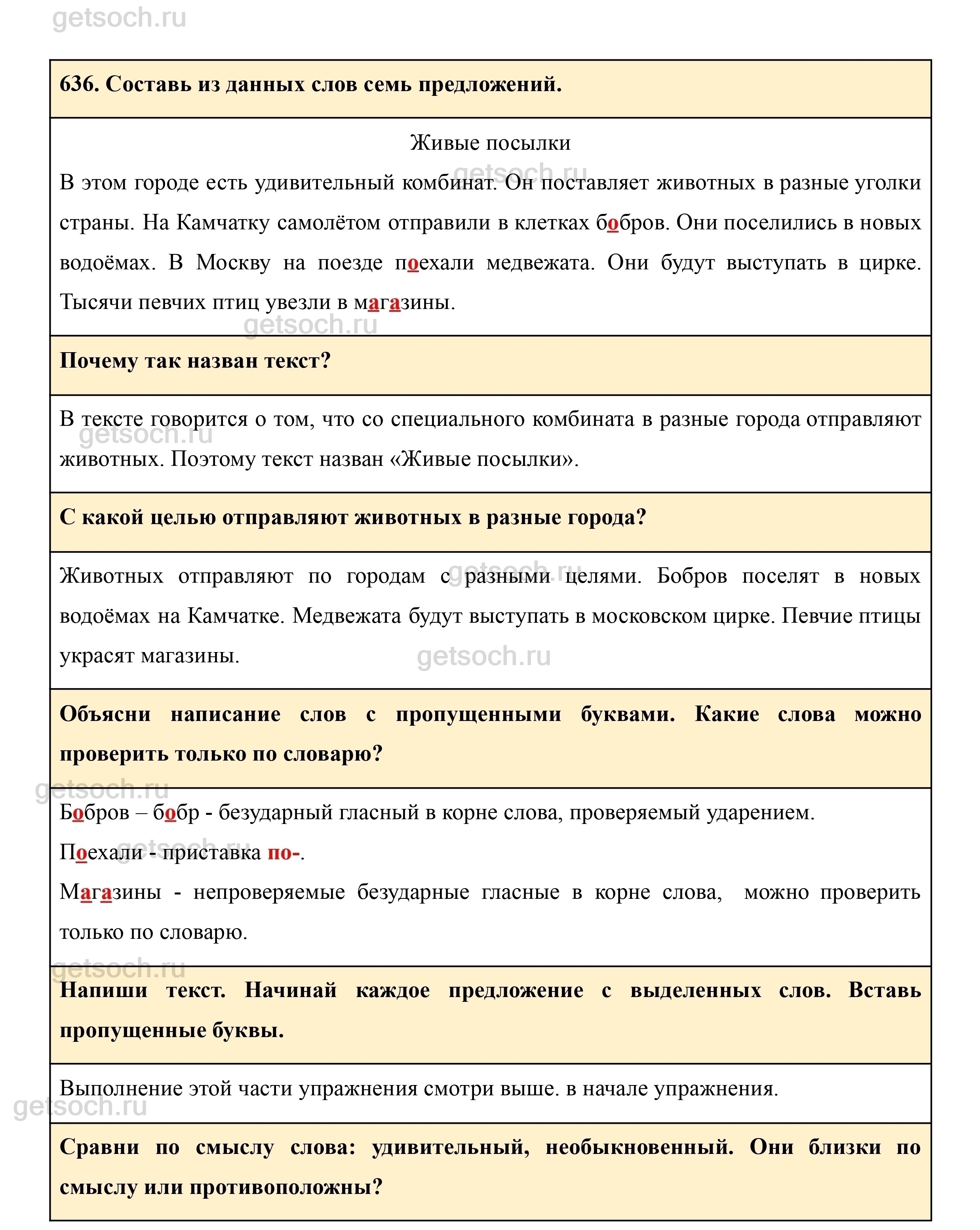 Рассмотрим ответы на Упражнение 636 из учебника по русскому языку для 3 класса Рамзаевой