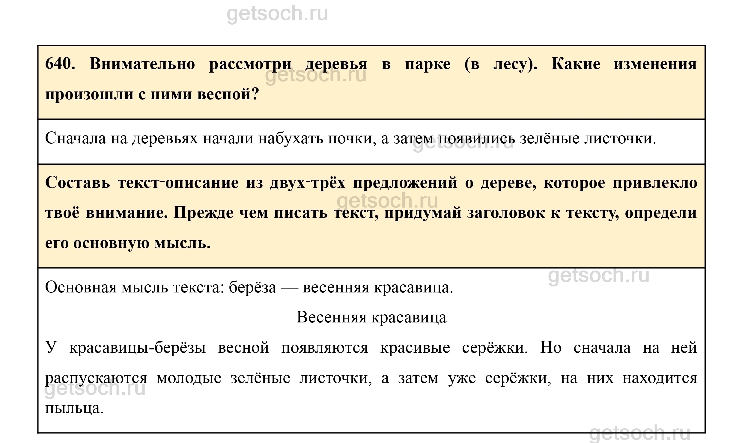 640. Внимательно рассмотри деревья в парке (в лесу). Какие изменения произошли с ними весной?
