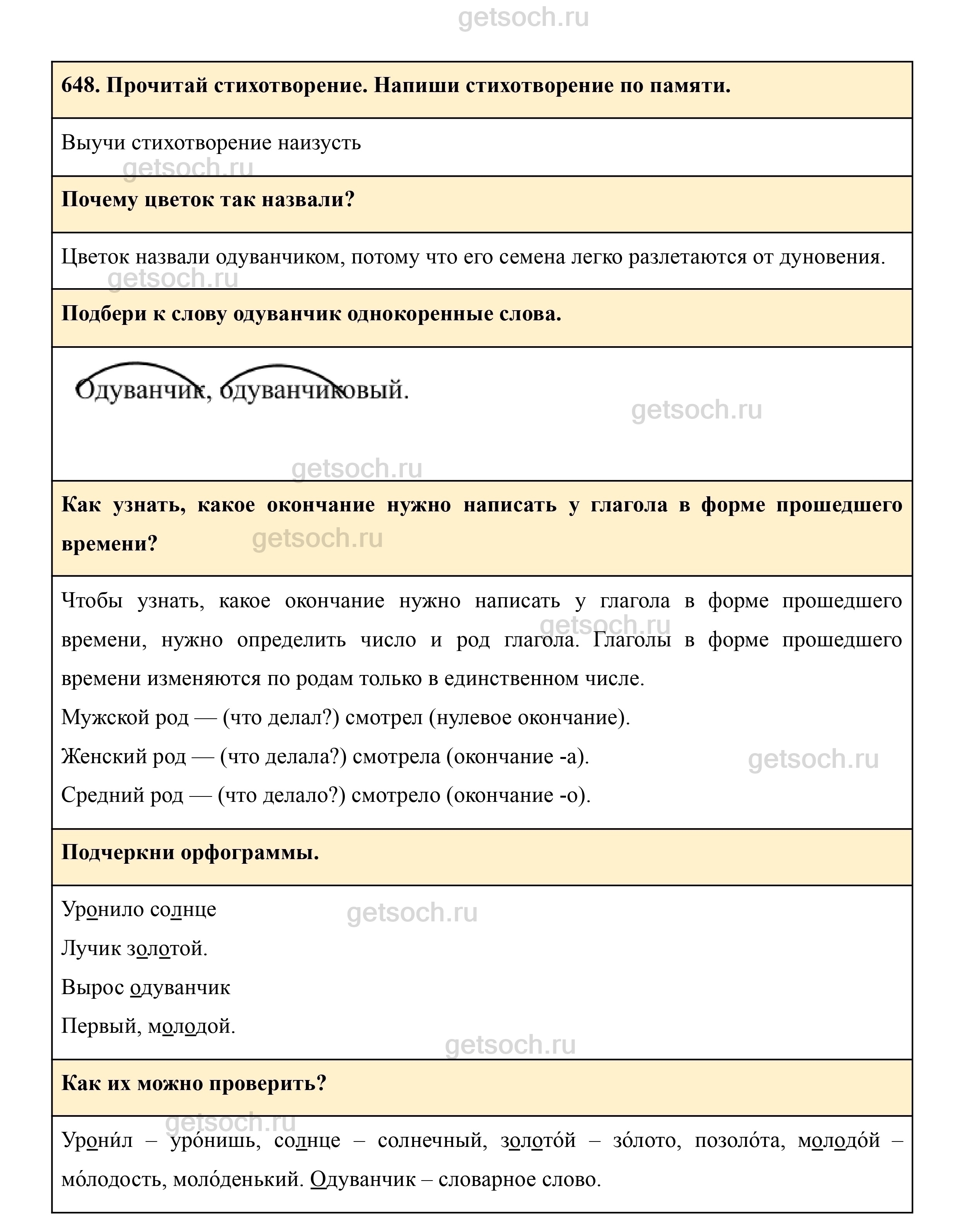 Рассмотрим ответы на Упражнение 648 из учебника по русскому языку для 3 класса Рамзаевой