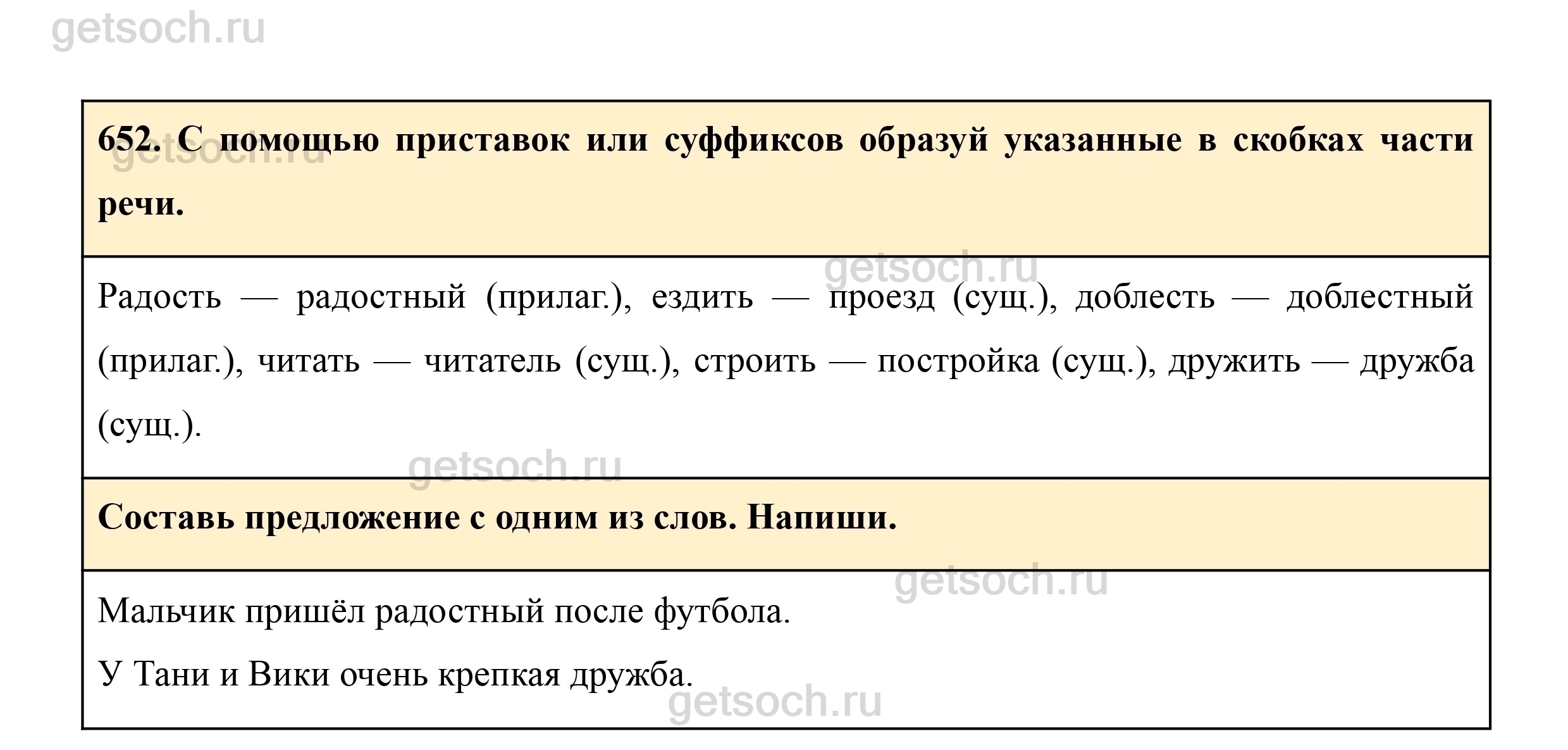 652. С помощью приставок или суффиксов образуй указанные в скобках части речи.