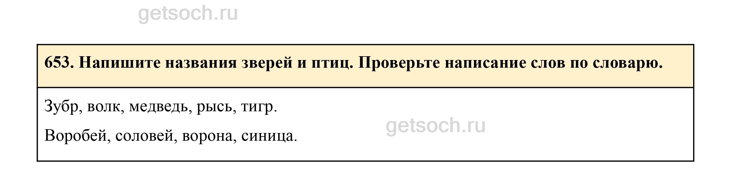 653. Напишите названия зверей и птиц. Проверьте написание слов по словарю.