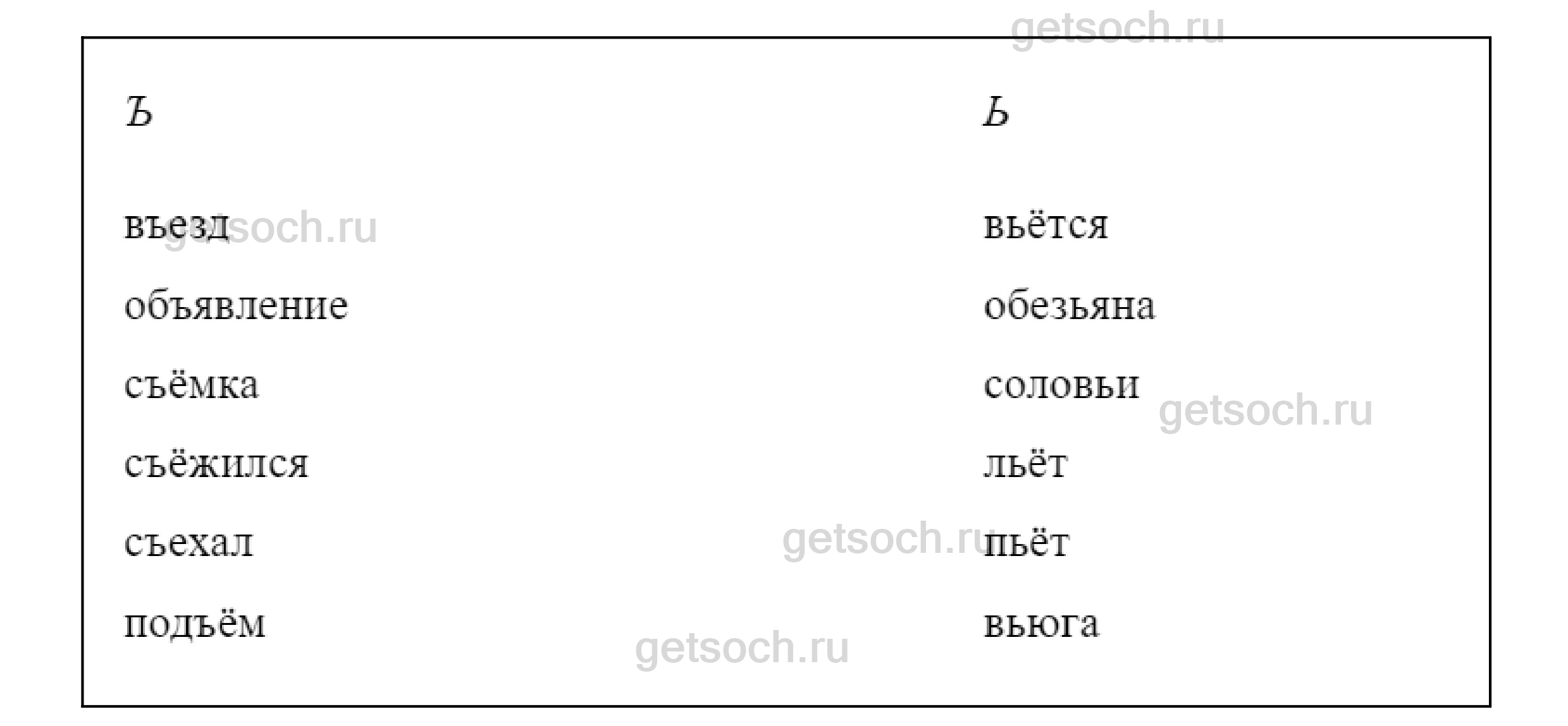 Напиши слова в два столбика: в левый — с ъ, в правый — с ь.