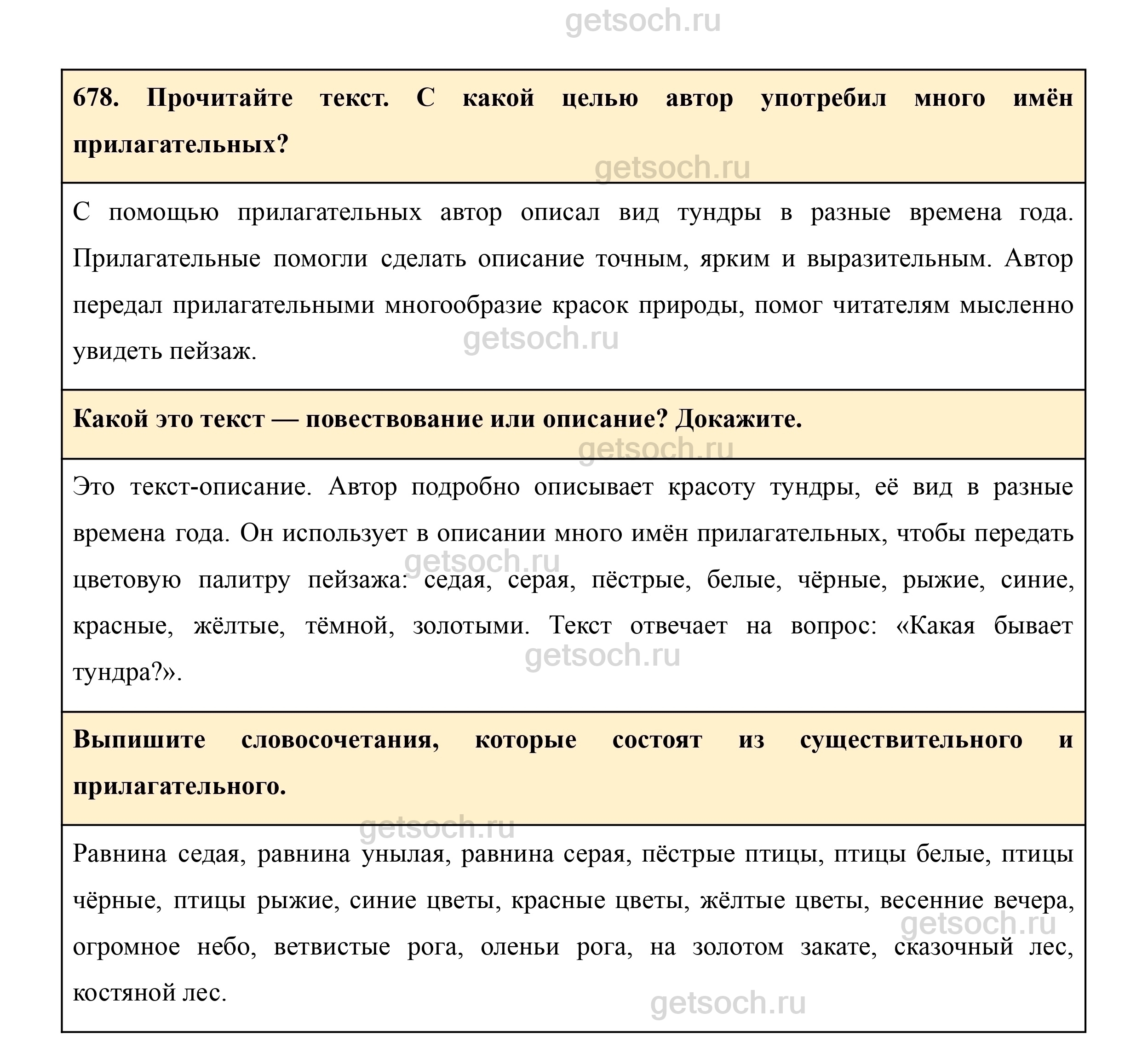 678. Прочитайте текст. С какой целью автор употребил много имён прилагательных?
