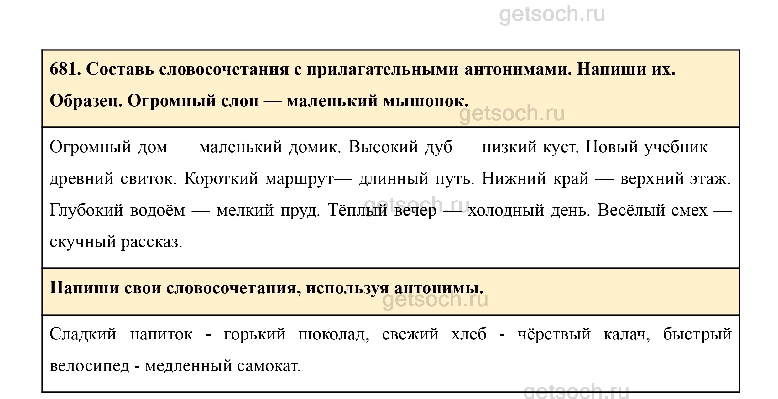 681. Составь словосочетания с прилагательными‑антонимами. Напиши их.