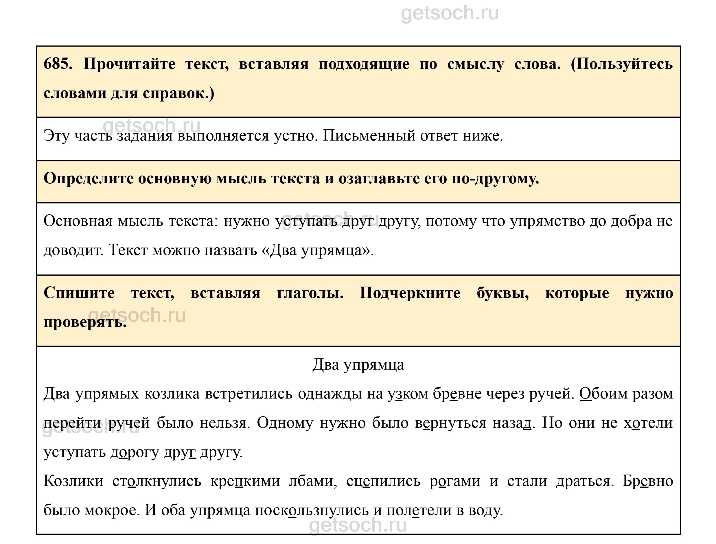 Рассмотрим ответы на Упражнение 685 из учебника по русскому языку для 3 класса Рамзаевой