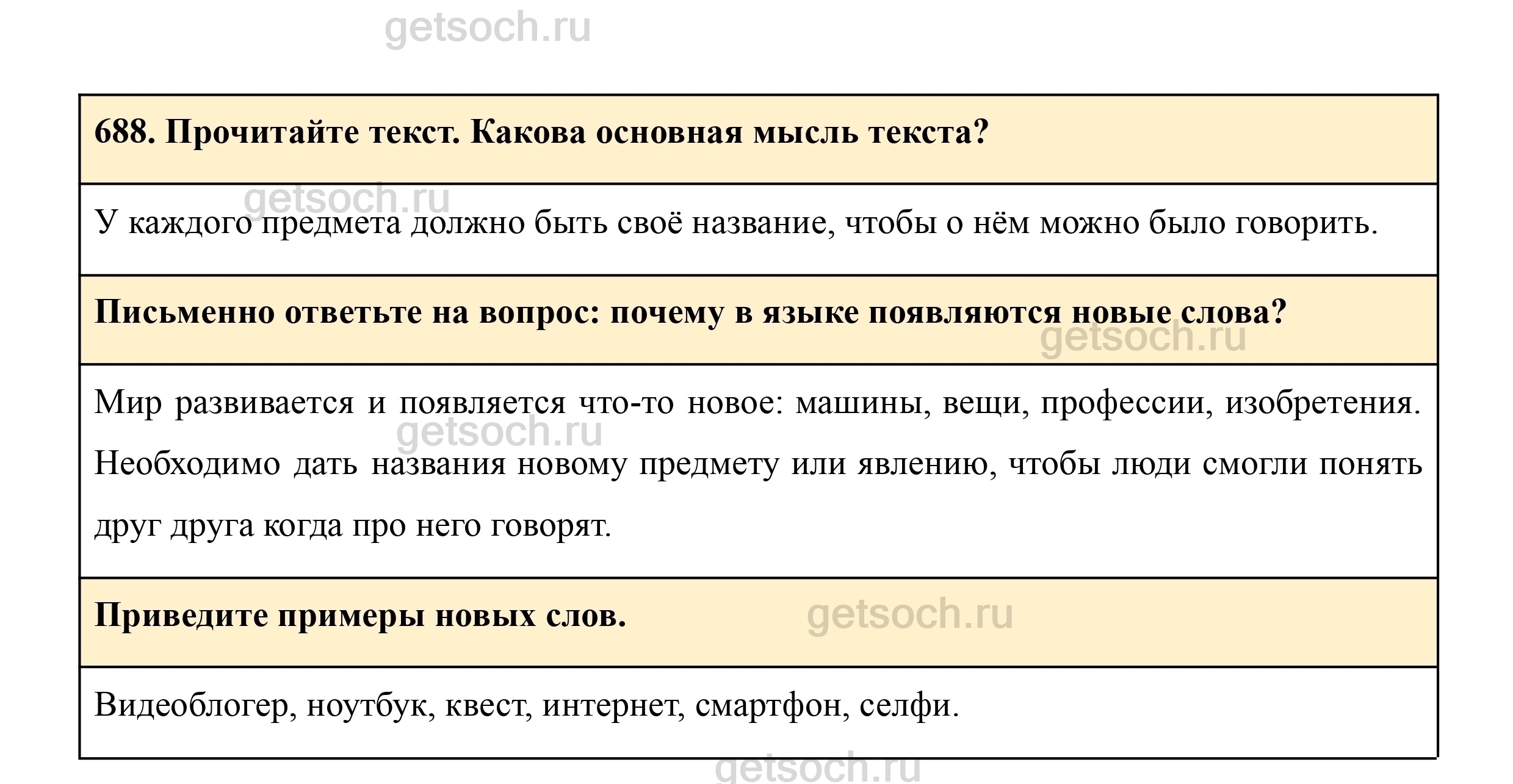Рассмотрим ответы на Упражнение 688 из учебника по русскому языку для 3 класса Рамзаевой