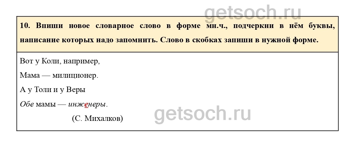 10. Впиши новое словарное слово в форме мн.ч., подчеркни в нём буквы, написание которых надо запомнить. Слово в скобках запиши в нужной форме.