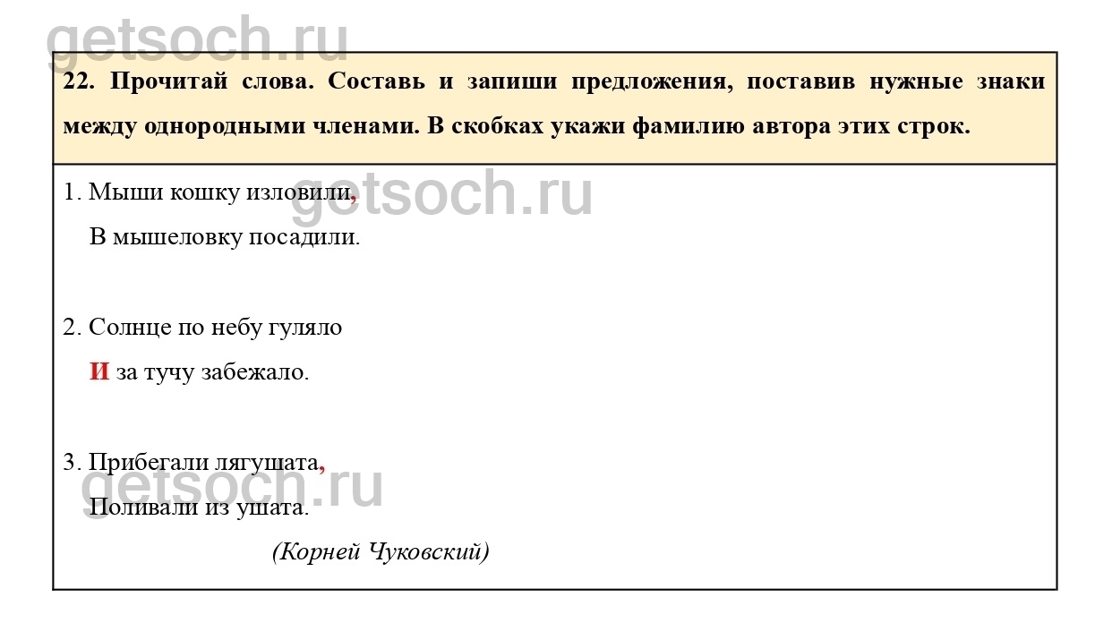 22. Прочитай слова. Составь и запиши предложения, поставив нужные знаки между однородными членами. В скобках укажи фамилию автора этих строк.