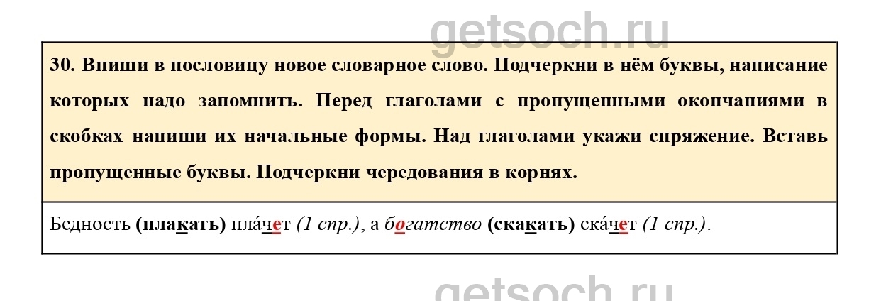 30. Впиши в пословицу новое словарное слово. Подчеркни в нём буквы, написание которых надо запомнить. Перед глаголами с пропущенными окончаниями в скобках напиши их начальные формы. Над глаголами укажи спряжение. Вставь пропущенные буквы. Подчеркни чередования в корнях.