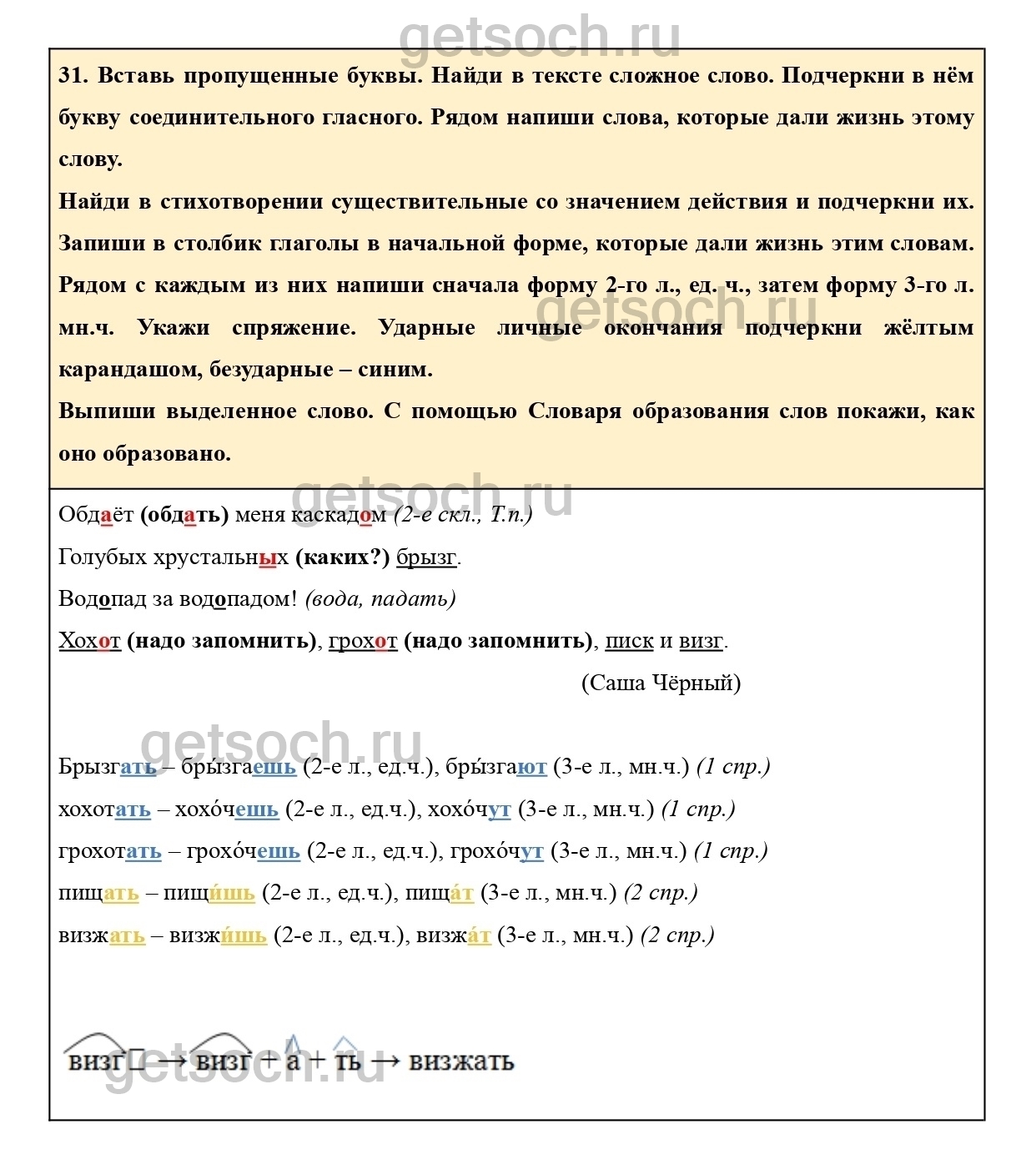 Рассмотрим ответы на Упражнение 31 из тетради для самостоятельной работы по русскому языку для 4 класса Байковой
