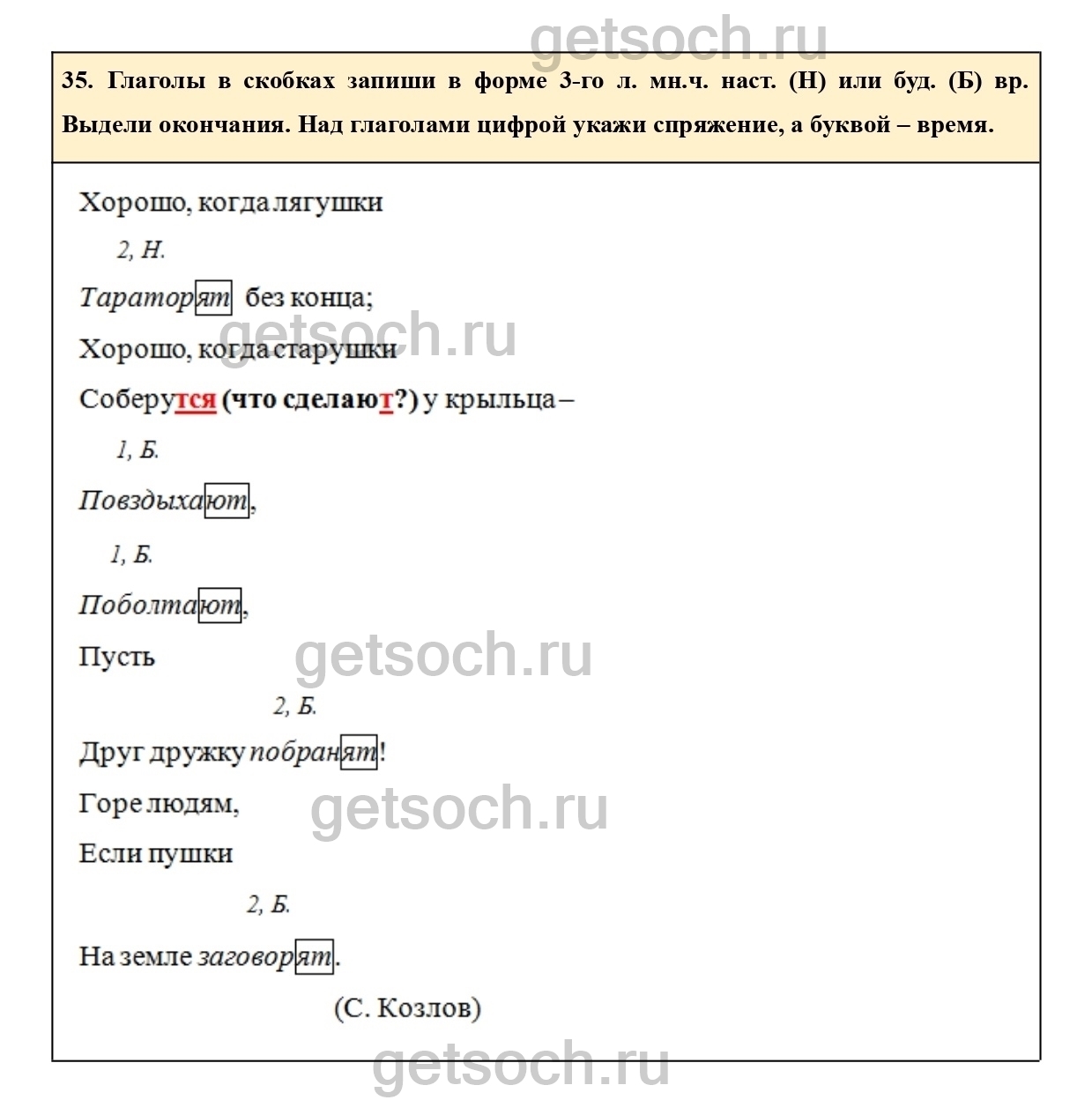 Рассмотрим ответы на Упражнение 35 из тетради для самостоятельной работы по русскому языку для 4 класса Байковой