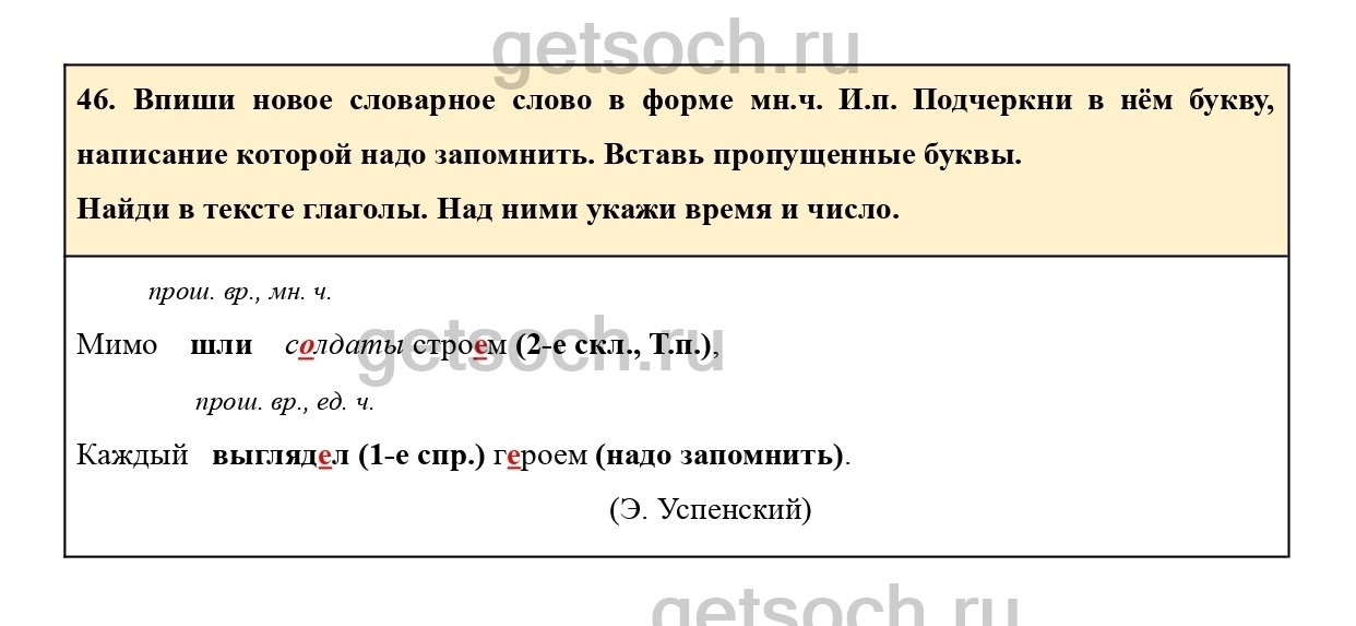 Рассмотрим ответы на Упражнение 46 из тетради для самостоятельной работы по русскому языку для 4 класса Байковой