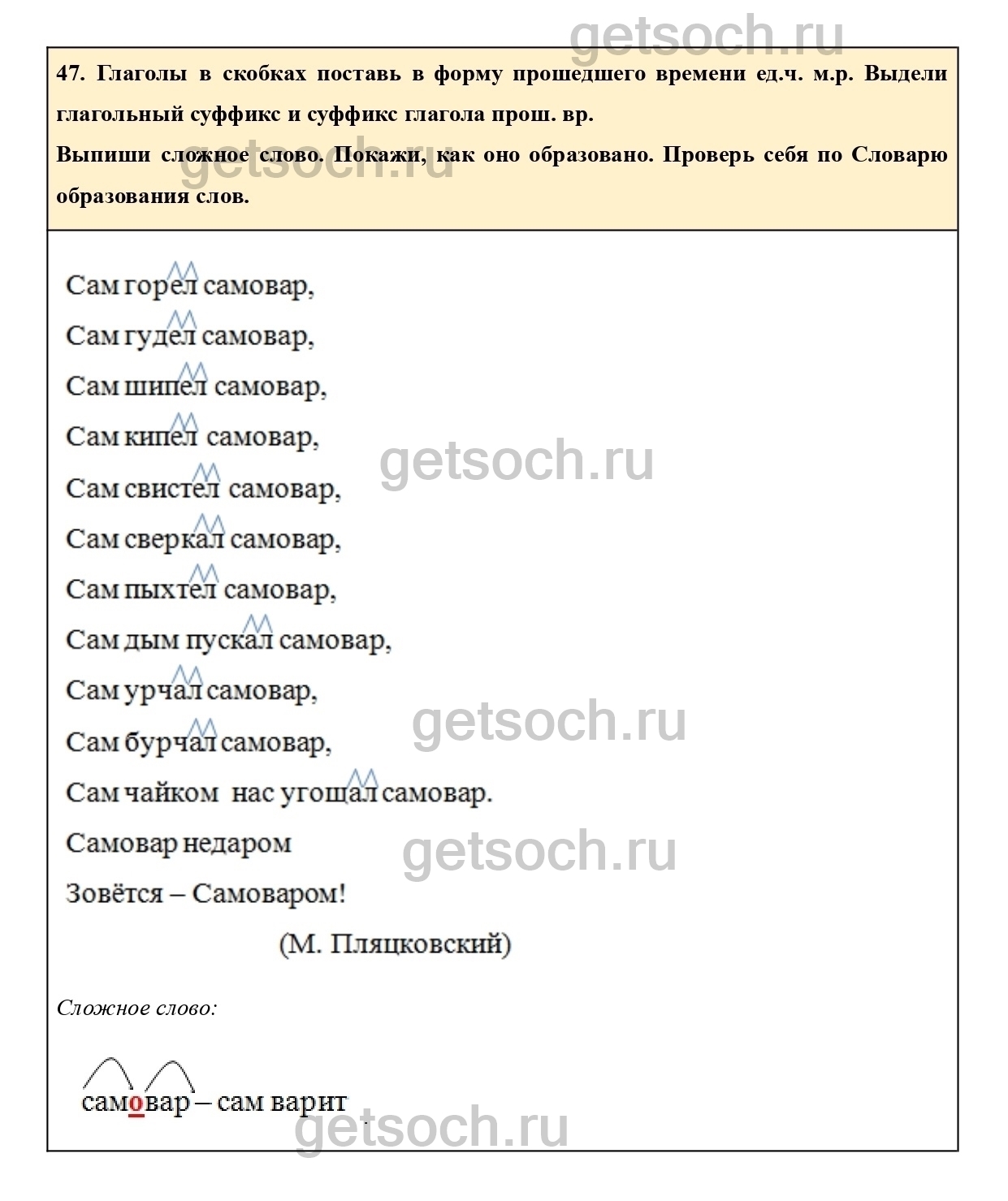 Рассмотрим ответы на Упражнение 47 из тетради для самостоятельной работы по русскому языку для 4 класса Байковой