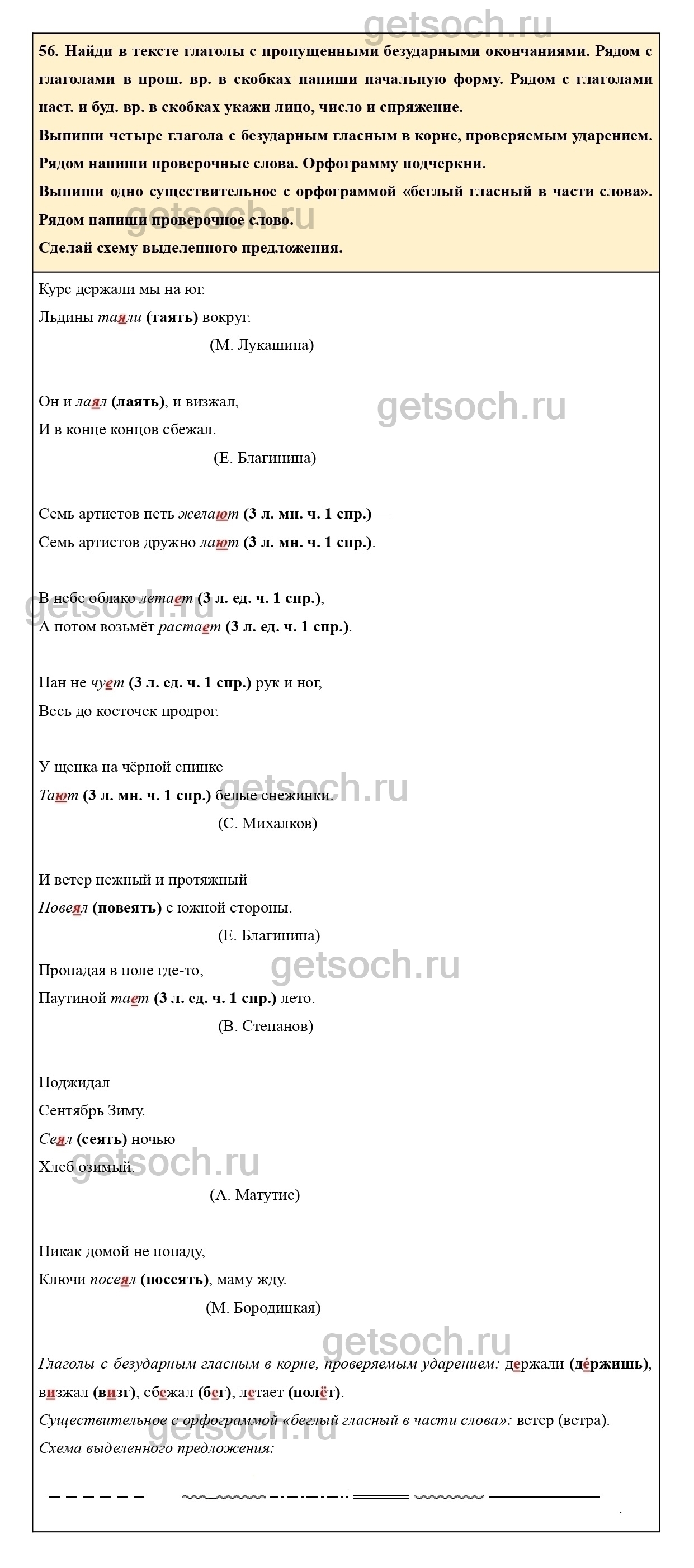 Рассмотрим ответы на Упражнение 56 из тетради для самостоятельной работы по русскому языку для 4 класса Байковой