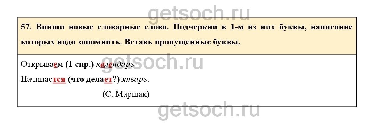 57. Впиши новые словарные слова. Подчеркни в 1-м из них буквы, написание которых надо запомнить. Вставь пропущенные буквы.