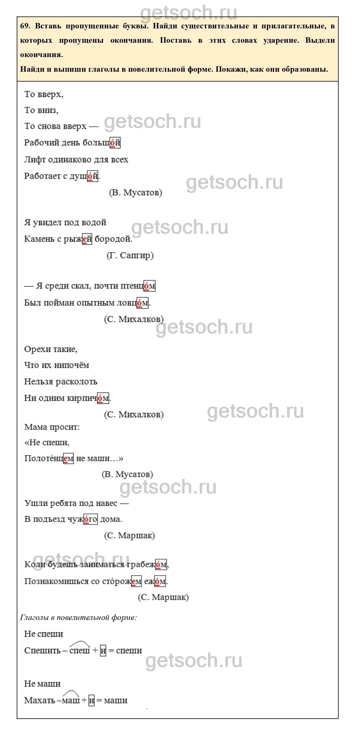 Рассмотрим ответы на Упражнение 69 из тетради для самостоятельной работы по русскому языку для 4 класса Байковой