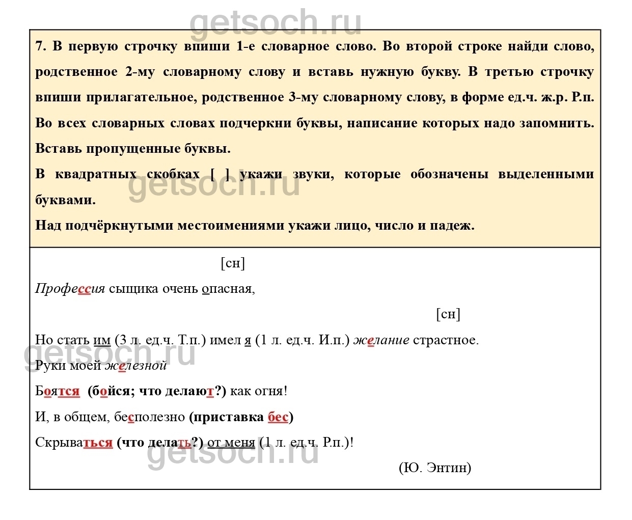 Рассмотрим ответы на Упражнение 7 из тетради для самостоятельной работы по русскому языку для 4 класса Байковой