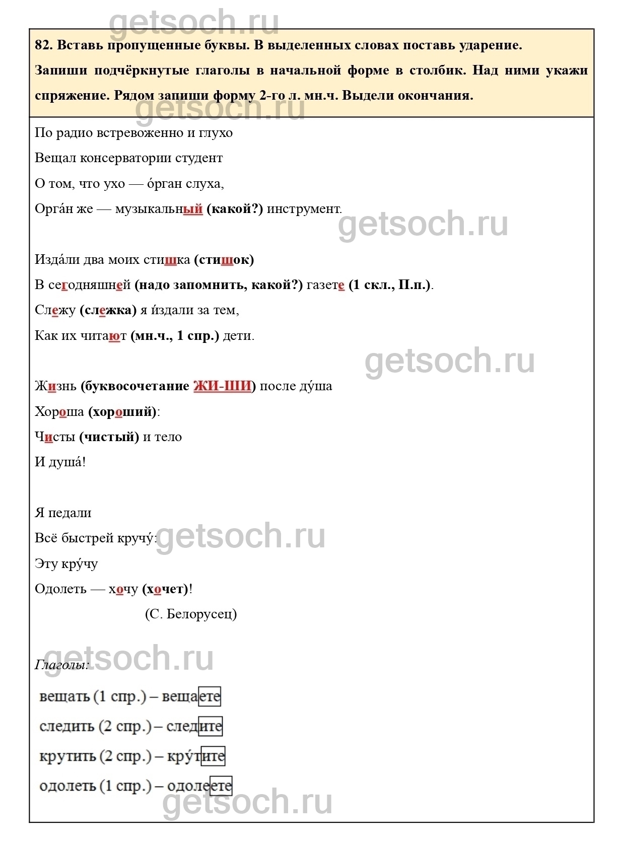 Рассмотрим ответы на Упражнение 82 из тетради для самостоятельной работы по русскому языку для 4 класса Байковой