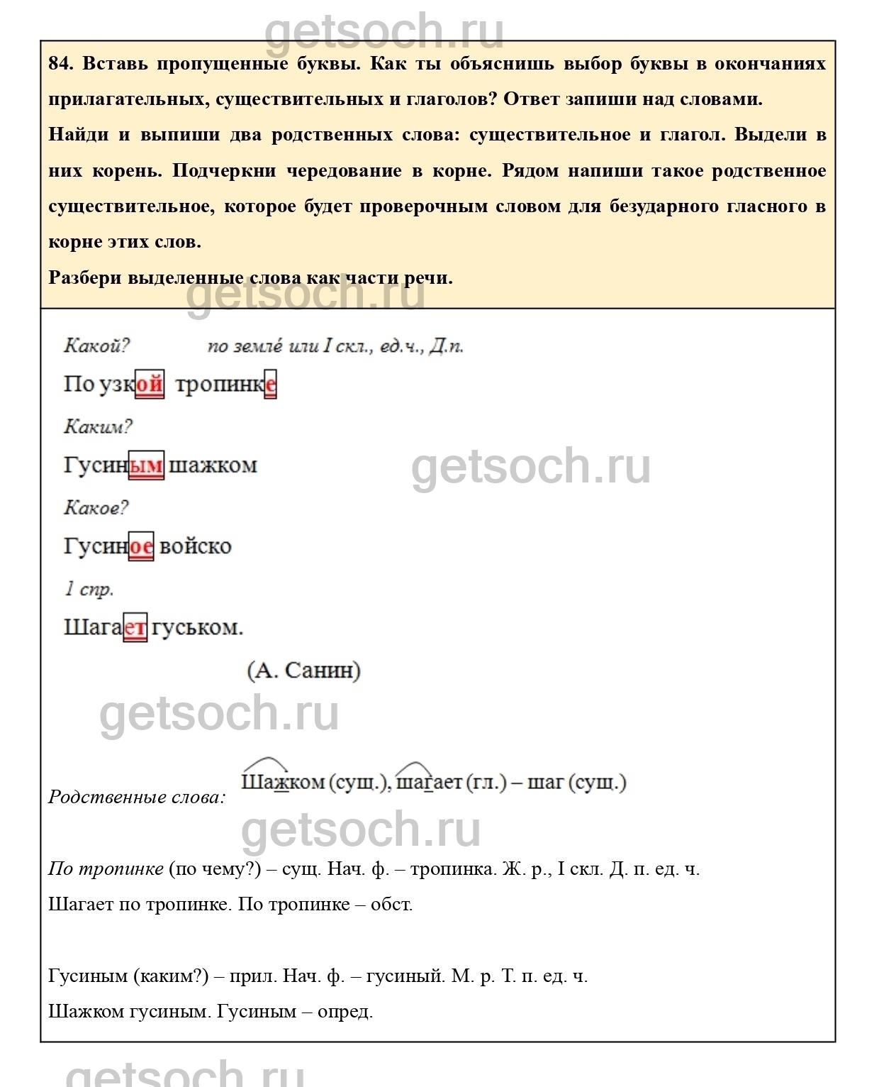 84. Вставь пропущенные буквы. Как ты объяснишь выбор буквы в окончаниях прилагательных, существительных и глаголов? Ответ запиши над словами.