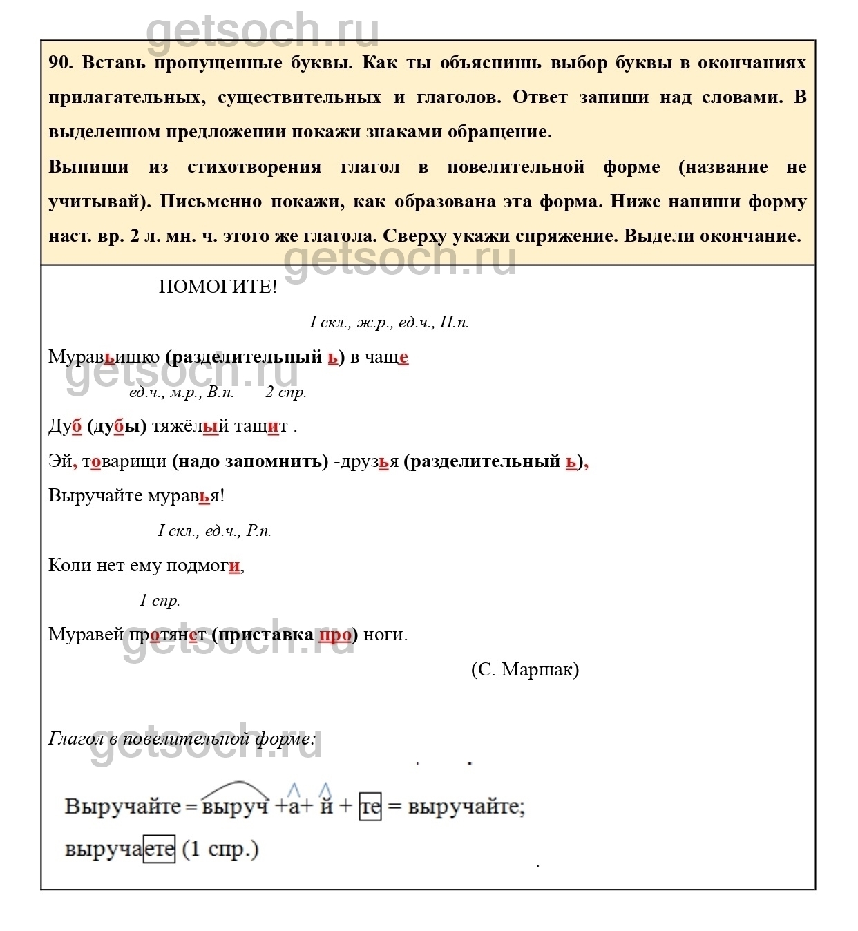 90. Вставь пропущенные буквы. Как ты объяснишь выбор буквы в окончаниях прилагательных, существительных и глаголов. Ответ запиши над словами. В выделенном предложении покажи знаками обращение.