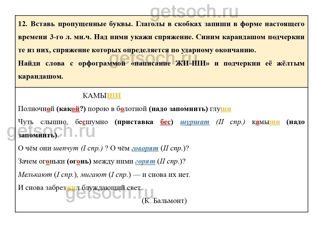 12. Вставь пропущенные буквы. Глаголы в скобках запиши в форме настоящего времени 3-го л. мн.ч. Над ними укажи спряжение. Синим карандашом подчеркни те из них, спряжение которых определяется по ударному окончанию.