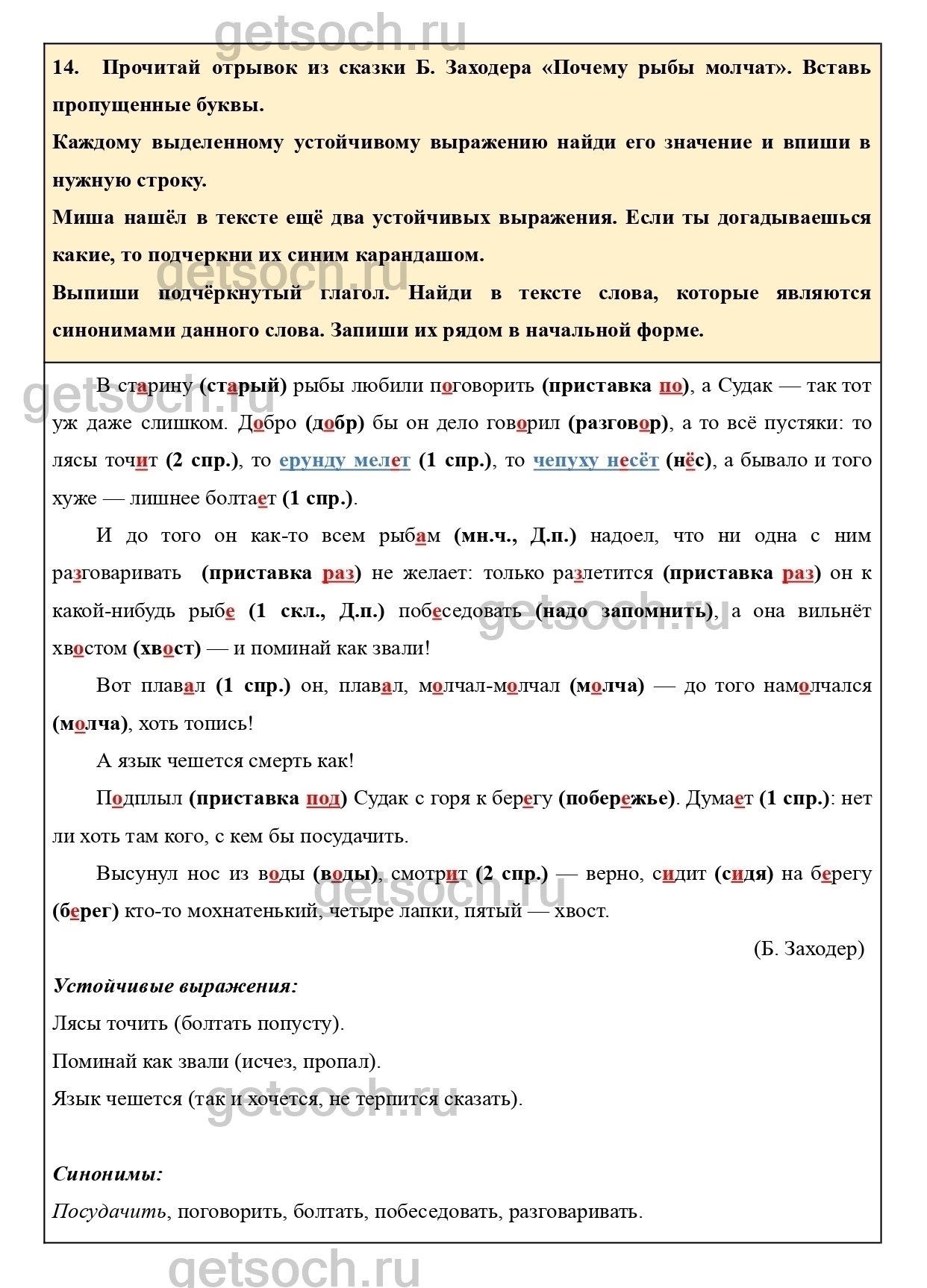 14. Прочитай отрывок из сказки Б. Заходера «Почему рыбы молчат». Вставь пропущенные буквы.