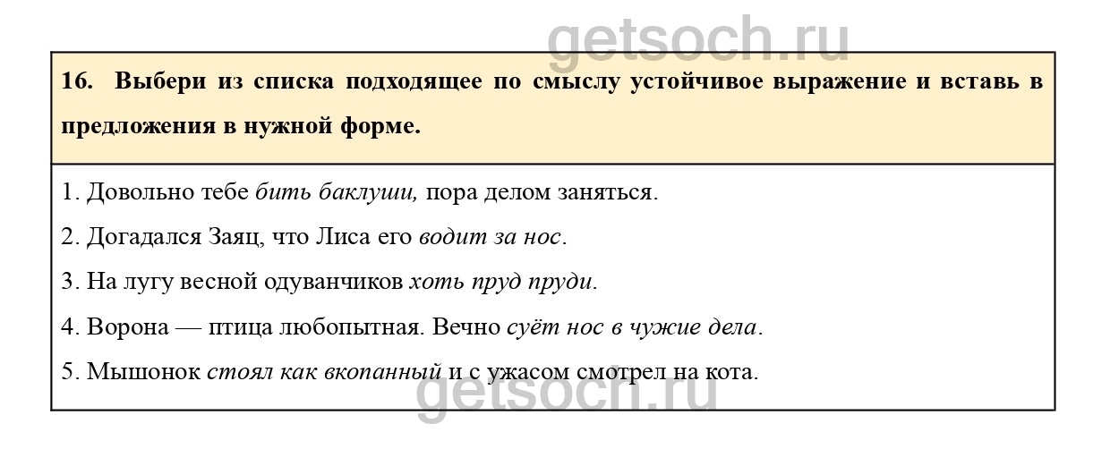 16. Выбери из списка подходящее по смыслу устойчивое выражение и вставь в предложения в нужной форме.